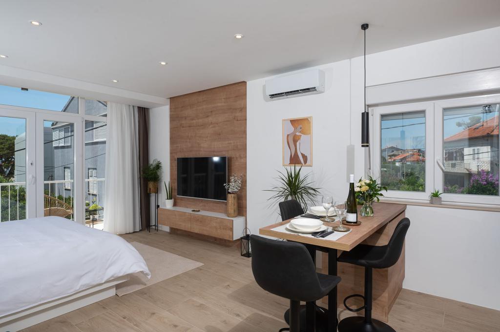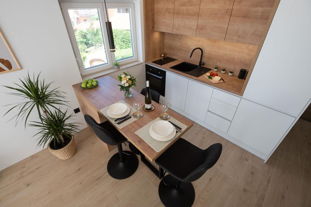 Nas boravak u ovom apartmanu bio je zaista izvanredan. Lokacija je savršena - smješten na mirnom mjestu odmah uz more, a udaljenost od centra je svega pola sata ugodne šetnje uz obalu. Apartman je besprijekorno čist i opremljen sa svime što je potrebno za ugodan boravak. Domaćini su izuzetno ljubazni i susretljivi, te su nam dali odlične preporuke što posjetiti i gdje jesti. Posebno želimo pohvaliti vlasnicu, koja je predivna i s kojom je bilo izuzetno lako komunicirati. Najviše smo uživali sjedeći na balkonu i pijući jutarnju kavu uz prekrasan pogled na more. U blizini se nalazi mali dućan, svega nekoliko minuta hoda, a Lidl je udaljen oko 20 minuta pješice. Također, u neposrednoj blizini su dvije manje plaže do kojih se stiže za desetak minuta hoda, te nekoliko restorana i kafića gdje možete uživati u obroku ili kavi. Sve u svemu, ovo je bio savršen smještaj za opuštajući odmor i svakako ga preporučujemo svima koji traže miran i ugodan boravak uz more.