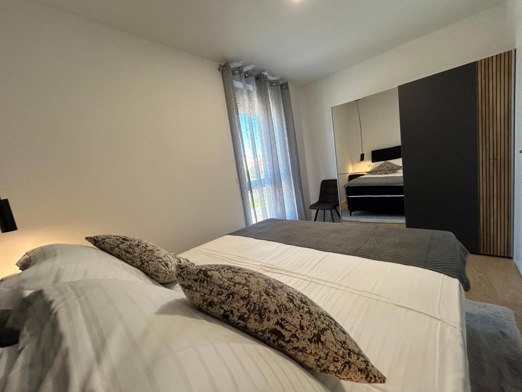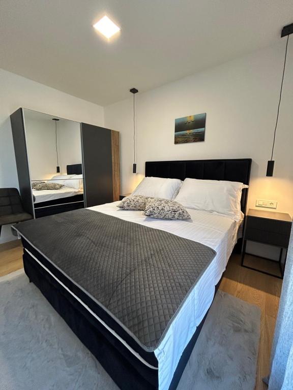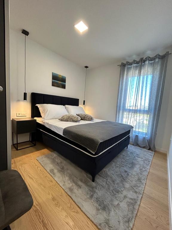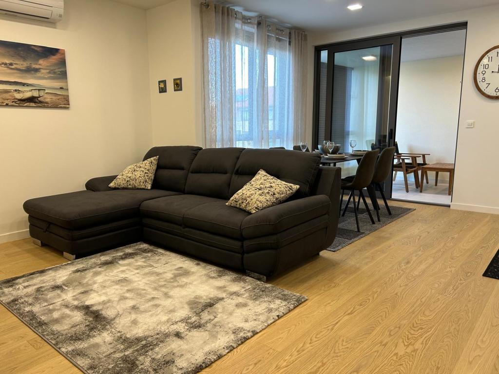 Novo !!! Stan se sastoji od : dvije spavaće sobe s velikim krevetima, prostranog dnevnog boravka s blagovaonicom i kuhinjom, kupaonicom, te izlazom na lođu... Moderno uređen apartman u mirnom predjelu grada, osigurano parkirališno mjesto, blizina plaže, dućana, restorana, šetnice, teniskih terena, caffe bara, dječjeg igrališta, blizina marine -mogućnost najma broda, ...