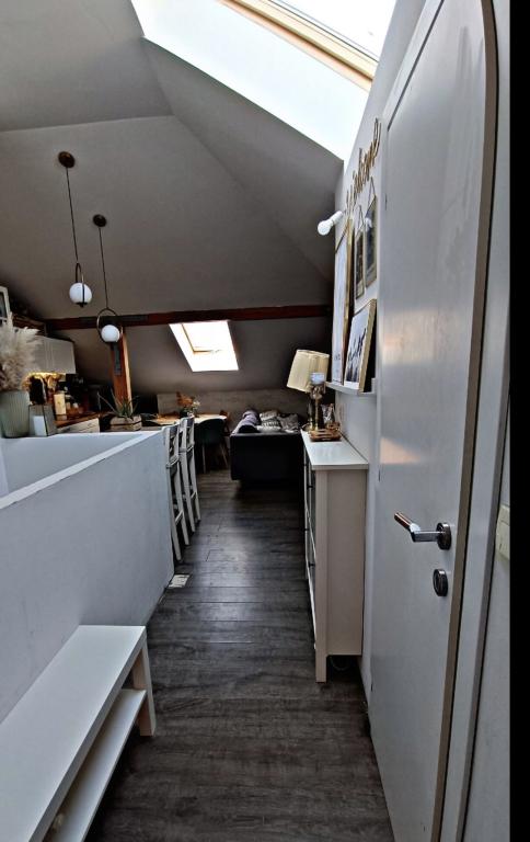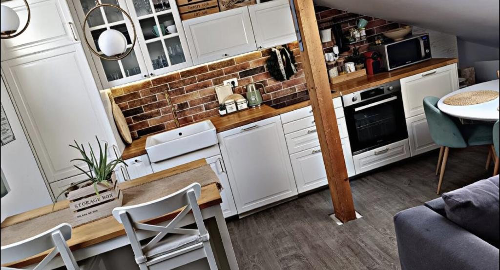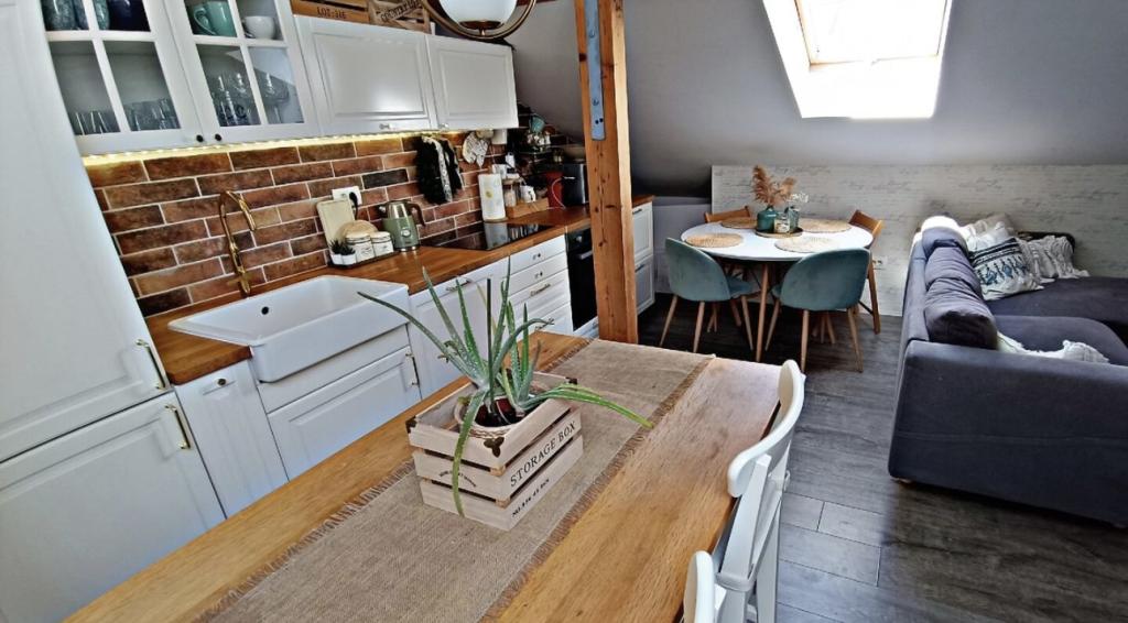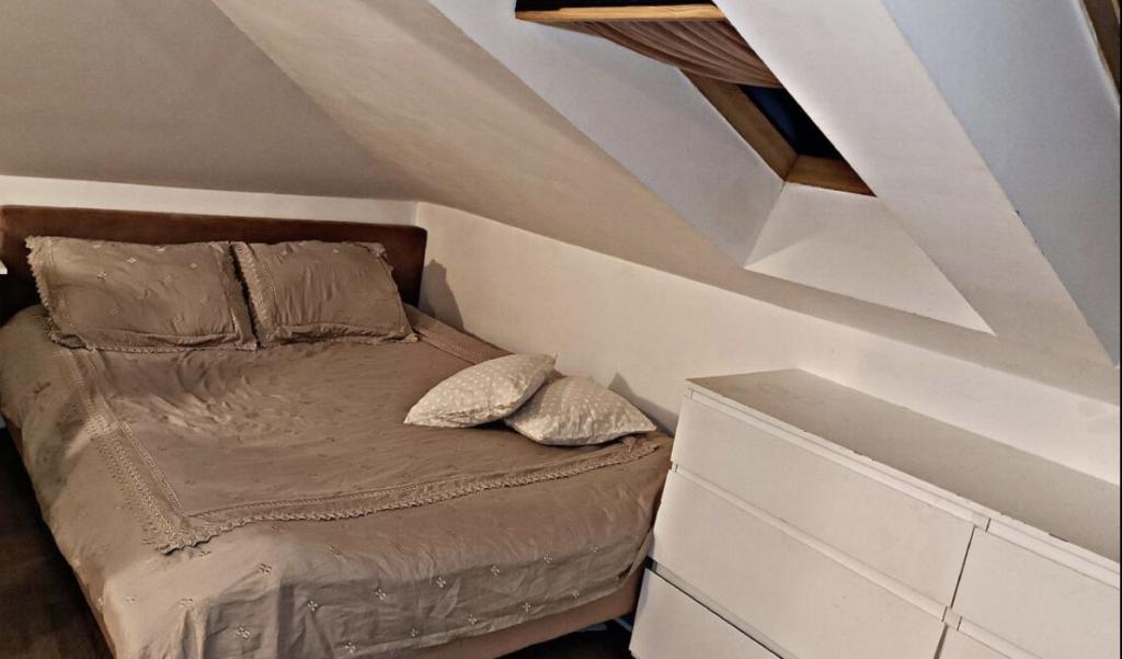 Opustite se u ovom ugodnom smještaju u potkrovlju s pogledom na grad. Stan se nalazi u mirnom dijelu grada. Nalazi se u potkrovlju manje zgrade. Sunčevih zraka ovdje ne manjka jer imamo četiri krovna prozora u 40 kvadrata stambenog prostora. Stan ima jednu spavaću sobu, kupaonicu i jedan veći prostor u kojem se nalaze kuhinja, dnevni poravak i radni prostor. Do stana vode unutranje stepenice. Ispred zgrade se nalazi parkirno mjesto. U apartman ulazite sami pomoću sefa na vratima.