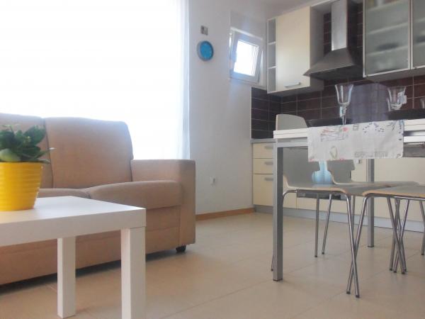 Slobodno od 12.07-25.07. CIJENA za navedeni period 60 EUR za noćenje Apartman se nalazi u Diklu, poznatom turističkom dijelu grada Zadra. Apartman je kompletno opremljen: - perilica suđa - perilica rublja - mikrovalna, kuhalo za vodu, aparat za kavu Apartman se nalazi u manjoj stambenoj zgradi u sklopu apartmansko-stambenog naselja. Apartman ima osiguran parking ispred zgrade. NAVEDENE CIJENE SU OKVIRNE I PODLOŽNE SU DOGOVORU. Na duži broj noćenja odobravamo popust