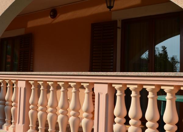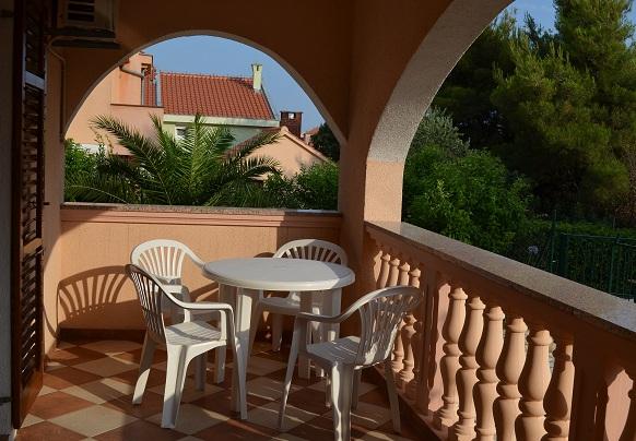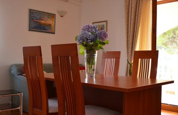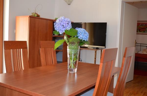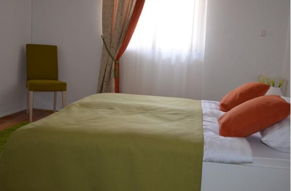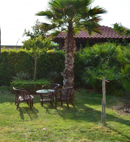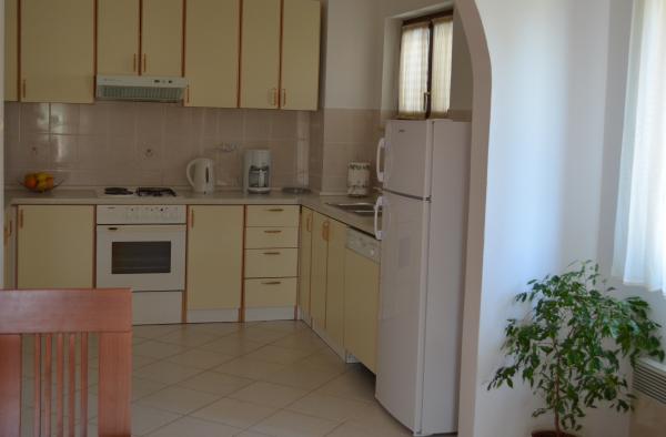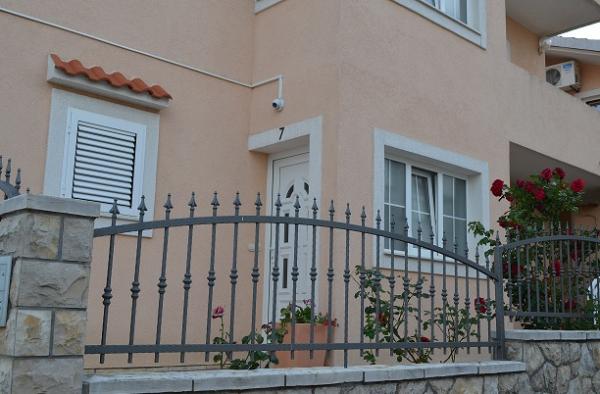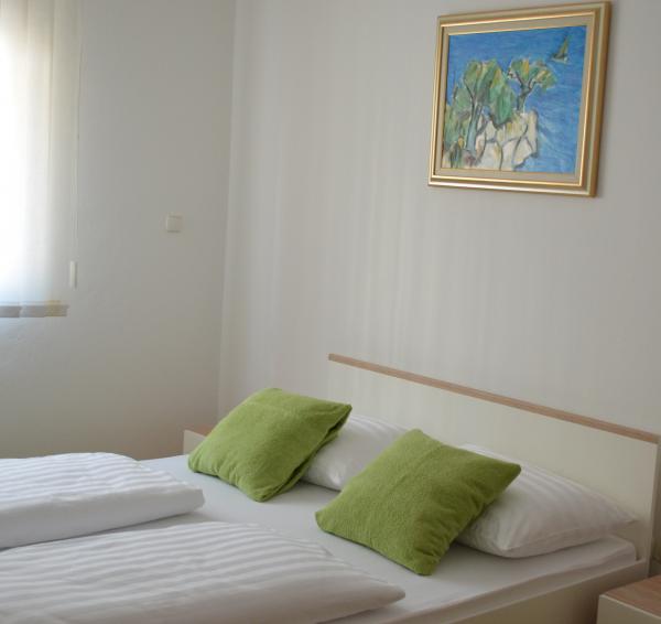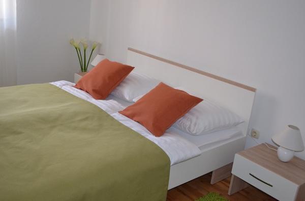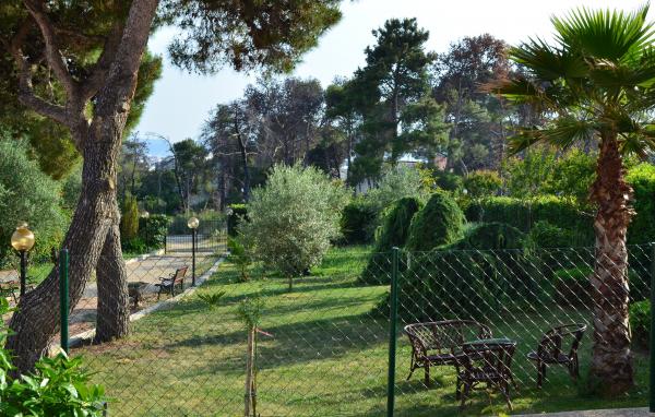 Kompletno i suvremeno oprevljem apartman sa dvije spavaće sobe sa dva velika bračna kreveta i dnevnim boravkom sa kaučom na rasklapanje za jednu osobu, kuhinjom, kupaonicom, terasom od 20 m kvadratnih, pogledom na vrt od 1000 m kvadratnih uz korištenje parka, sa mogućnosti igranja stonog tenisa, pikada, boćanja i vožnje biciklom. Apartman je u privatnoj zgradi u mirnom dijelu grada, sa parkingom za 4 auta, Blizina restorana, banke i pošte, uz usluge masaže uz dodatnu naplatu kao i prijevoz autom. Prijevoz kod odlaska i dolaska do aerodroma i kolodvora besplatan. Plaža je udaljena 1000 metara, a poznata kupališta oko 1500 metara. Gradska jezgra je na 1500 metara, a veliki diskonti u krugu 300 metara, zajedno sa malim dućanima. Moguće je besplatno korištenje grila za pečenje i cjelupne bašte za odmor i sunčanje.