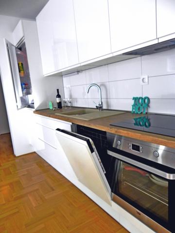 Novoizgrađeni apartman u zgradi smješten u širem centru grada, na udaljenosti od Narodnog trga svega 10min pješice. U blizini objekta na udaljenosti 5min pješice se nalaze brojni sadržaji poput sportskih objekata, trgovina, automat club, caffe barovi itd. U sklopu objekta nalaze se dvije spavaće sobe, kuhinja sa dnevnim boravkom, WC i balkon sa pogledom na more. Apartman se nalazi na 5. katu i južne je orijentacije, a u sklopu apartmana postoji i parkirno mjesto u podzemnoj garaži.