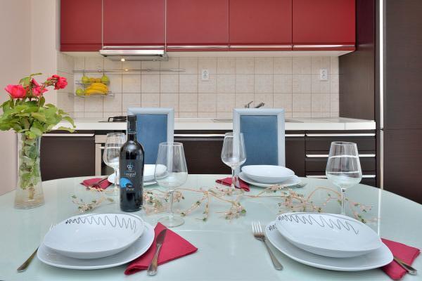 Apartman je moderan, novouredjen i cist. Docekala nas je ljubazna gospodja Ivanka, a u apartmanu nas je docekala boca soka, kava, mlijeko, ulje i pakiranje caja te dodatne stvari poput sredstva za pranje sudja, vrece za smece i wc papir. Fotografije vjerno prikazuju stanje apartmana, a koji sadrzi i perilicu rublja, perilicu sudja te klimu i TV. Apartman se nalazi blizu centra, tj. stare jezgre (desetak minuta hoda), u blizini se nalaze ducani (pet minuta hoda do velikog Konzuma) te je osigurano parkirno mjesto. Do plaze/mora ima dvije minute hoda.