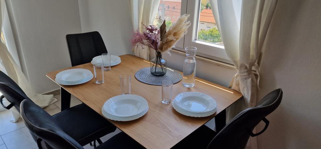Turistička pristojba je uključena u cijenu.Osim privatnog parkinga i besplatnog wifi-ja gosti imaju i mogućnost besplatne upotrebe veš mašine. Apartmani se nalaze 5min vožnjom do staroga grada, i 6-7min vožnje do plaže. Također nudimo mogućnost najma glisera, sa ili bez kapetana, i organiziranja izleta, kao i organizacije privatnog transfera od/do aerodroma, autobusnog kolodvora, itd. Sa našim kontaktima u turističkoj agenciji, izleti na Kornate, slapove Krke i Plitvice se također mogu organizirati. Osim hrvatskog, govorimo i fluentni engleski, ako vam ikako možemo pomoći, ili ako vam je išta potrebno, slobodno nam se obratite u svakom trenutku! :)