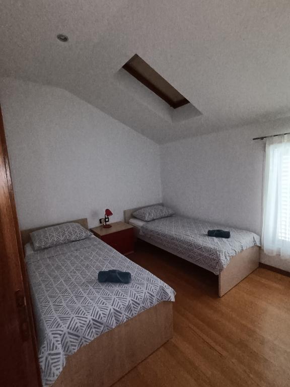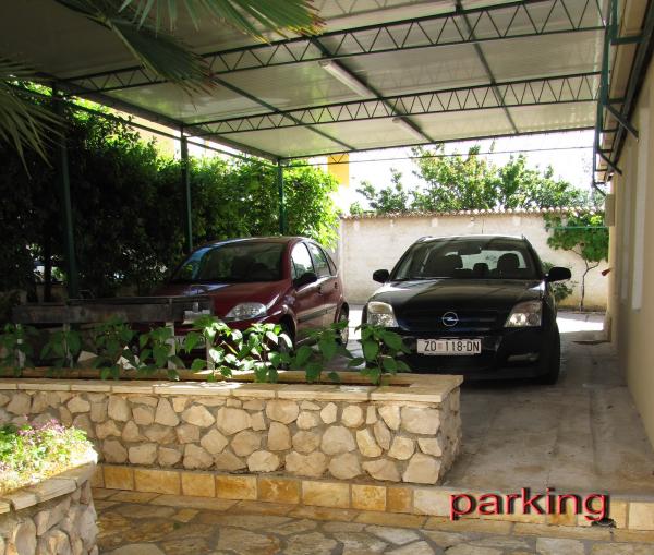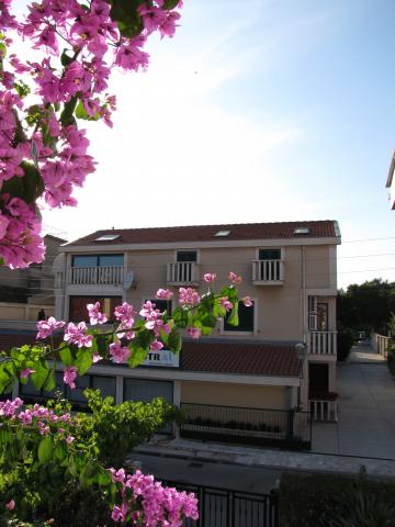 Dva apartmana površine cca 90 m2 nalaze se na prvom i drugom katu obiteljske kuće. Lokacija je pogodna zbog blizine plaža i ostalih sadržaja. Sastoje se od potpuno opremljene kuhinje, dnevne sobe, dvije spavaće sobe i kupaone. Kupaonica je opremljena WC-om, tuš kabinom ili kadom i umivaonikom sa ogledalom, ručnicima, fenom i sa perilicom rublja. Apartman 1 (4 1) na prvom katu je klimatiziran u dnevnoj sobi i predsoblju, opremljen je satelitskom TV. Gosti imaju na raspolaganju vlastitu terasu od 45 m2. Postoji mogućnost upotrebe kauča u dnevnoj sobi kao dodatnog ležaja. Apartman 2 na 2. katu je klimatiziran u dnevnoj sobi i predsoblju i opremljen satelitskom TV. Apartman ima manje balkone u sobama i veće francuske balkone u dnevnoj sobi. U sklopu okućnice osigurano je parkiralište za automobile. Bežični Internet je besplatan.