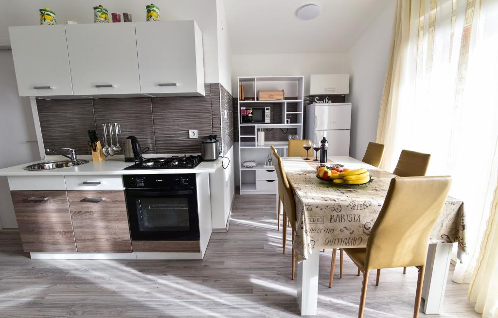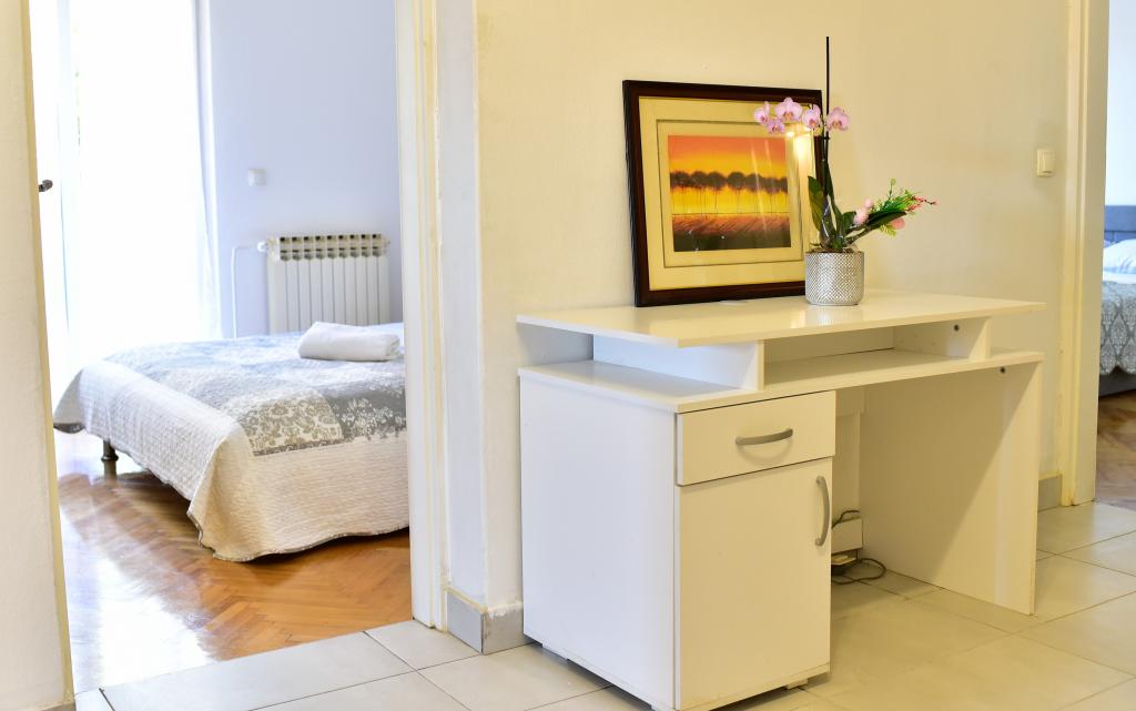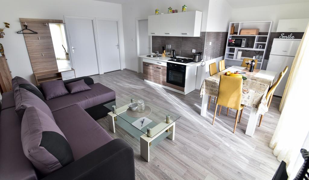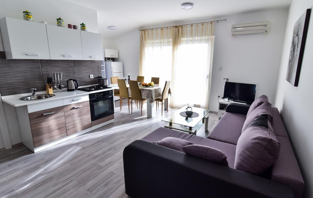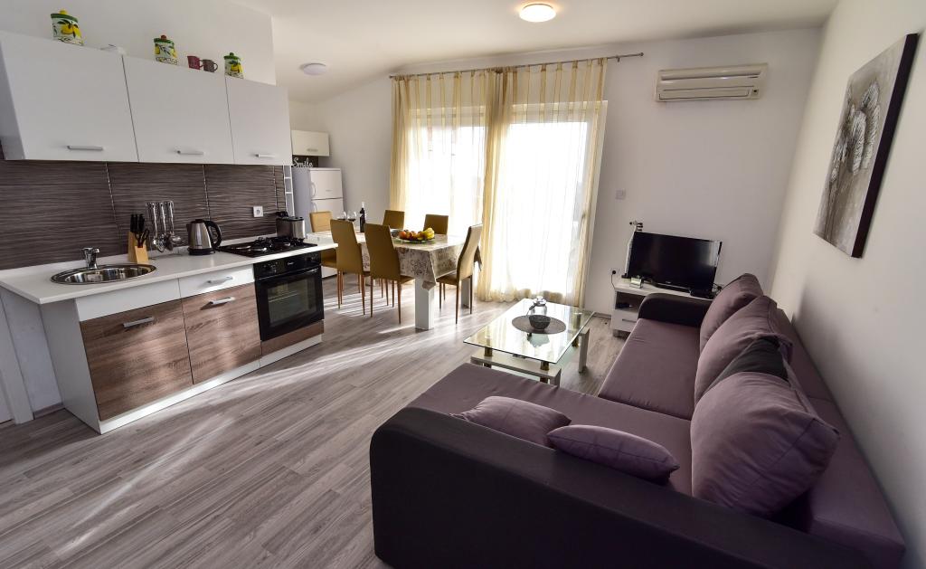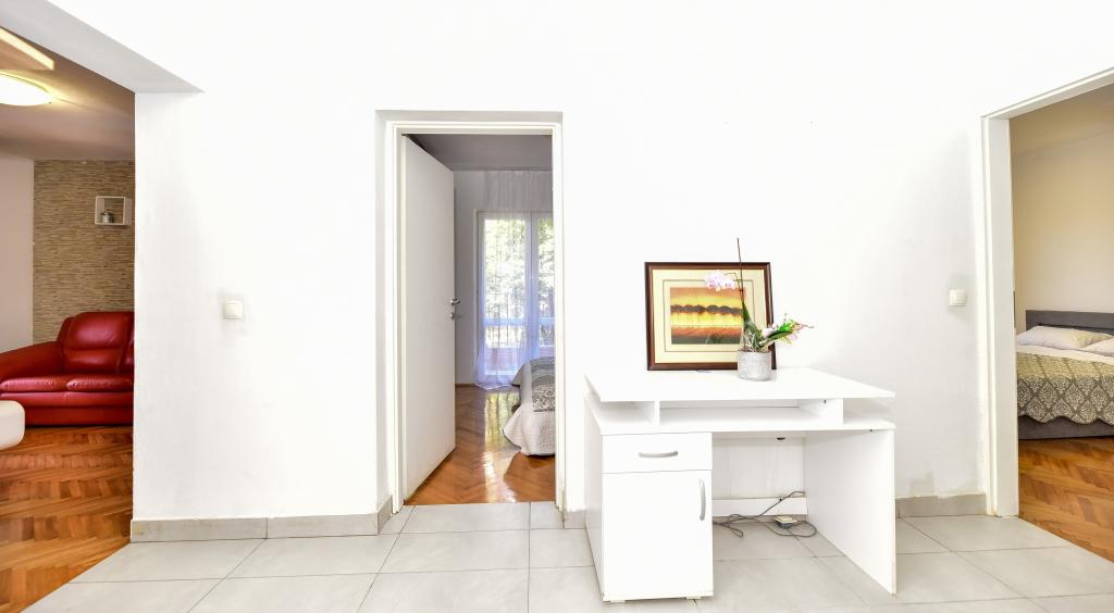 Apartman se nalazi 1 kilometar do najbliže plaže Borik i 500 metara do hotelskog kompleksa Falkensteiner na Boriku. Blizini naše četvrti nalazi se ljekarna, sportsko igralište u sklopu srednje škole Ekonomske, Trgovine, kafići, restorani i plaže. Centar grada je udaljen 2,5 kilometara od smještajne jedinica. Četvrt u kojoj se nalazi smještajne jedinice je miran, nema buke niti disko glazbe da ometa gostov boravak u smještenim jedinicama.