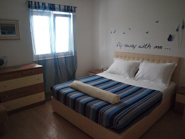 Novouređeni apartman u mirnom predjelu Zadra - Uvala Bregdetti/Arbanasi/Punta Bajlo. Objekt se nalazi 5 minuta hoda do plaže i 20 minuta hoda do centra grada. U blizini se nalazi trgovina, autobusno stajalište, a autobusni kolodvor je udaljen 10 minuta hoda. Osigurani su parking, klimatizacija, sušilo za kosu, krevetić za bebe, perilica rublja i perilica posuđa, a rado primamo i kućne ljubimce (imamo psa - ženku bobtaila). Posebnu pozornost posvetili smo Vašem kvalitetnom odmoru i snu te su svi kreveti opremljeni satenskom posteljinom. Apartman je idealan za parove s djecom ili za dva para, a ukoliko budete bili brzi i pažljivo promatrali, možda ćete uloviti i Kairosa - boga sretnog trenutka :-) Dobrodošli!