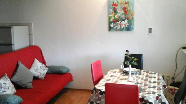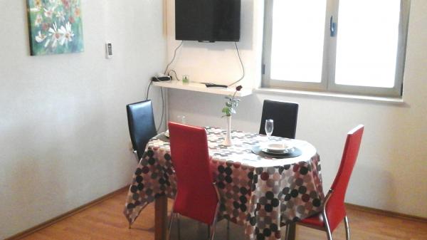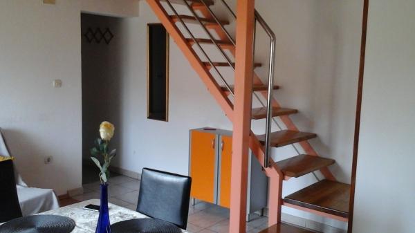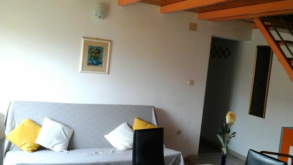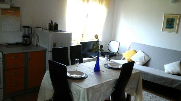 Apartman smješten u mirnom dijelu grada, nalazi se u privatnoj kući sa velikim parkiralištem, terasom i lijepo uređenom okućnicom. U apartmanu je 1 soba sa bračnim krevetom. soba sa 2 odvojena kreveta te na katu soba s pomoćnim ležajem(tipa futon), u dnevnoj sobi je garnitura za sjedenje s mogućnošću razvlačenja u još jedan ležaj(160x1200 cm), u kuhinji se nalaze, aparat za kuhanje vode, perilica za rublje, mikrovalna pećnica, aparat za filter kavu, posuđe...Super marketi (Konzum i Billa, te Mc`Donalds su 5-10 min. od apartmana gdje je i kolodvor(gradski i međugradski), do stare gradske jezgre ste za 20-ak minuta laganog hoda, a autobusom br. 2 za 5 minuta(cijena karte je 10 kn). Gradska plaža Kolovare udaljena je 15 min. od apartmana laganog hoda ili 5 min. ako idete automobilom. Ako želite odmor u tišini, bez gradske buke ovo je mjesto za Vas.