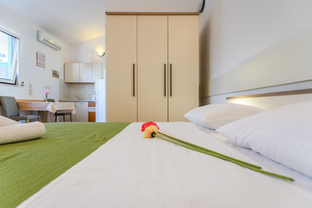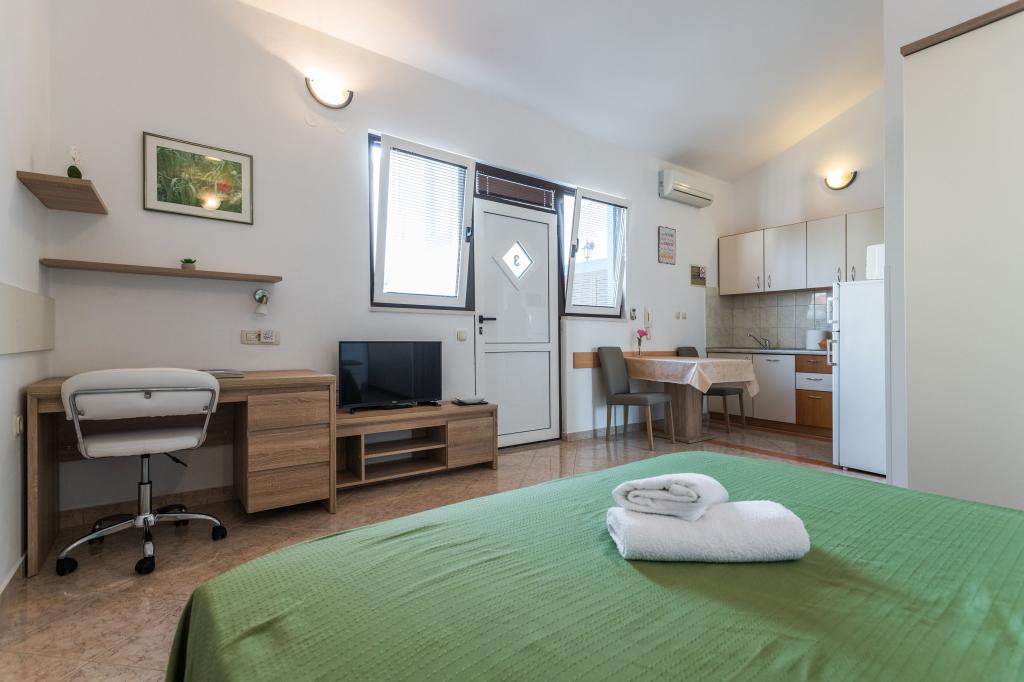 Kompletno opremljeni apartmani u mirnom dijelu grada, u prijateljskom susjedstvu i toplom okruženju, s dostupnim besplatnim parkirnim mjestima, zajedničkim dvorištem, malim vrtom, te vanjskim kaminom. Svaki apartman ima vlastiti balkon, kupaonicu i kuhinju. Domaćini su uvijek na usluzi svojim gostima za sve što im je potrebno. Apartmani se nalaze na 10 minuta hoda do trgovine i prvog dostupnog restorana, te su na 10 minuta vožnje autom do prve plaže, kao i do centra grada. Zračna luka nalazi se 6 kilometara od apartmana. Najbliža autobusna stanica udaljena je 2 minute ugodne šetnje, te je četvrt vrlo dobro prometno povezana s ostalim dijelovima grada.