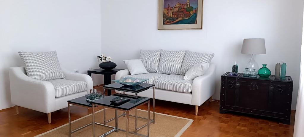 Novouređeni i suvremeno opremljeni apartmani smješteni na Boriku, dijelu grada poznatom po hotelima, restoranima, glavnoj gradskoj plaži, privatnim kućama i vilama. Objekt se nalazi u prvom redu do mora. Do centra grada dolazi se za 5 min. vožnje autom, odnosno 15-20 min. ugodne šetnje uz more. Plaža Vitrenjak nalazi se na udaljenosti 500 m te se može doći pješice, šetnjom uz more. Plaža Borik/Putamika nalazi se 800 m od apartmana.