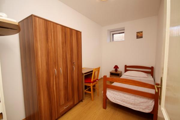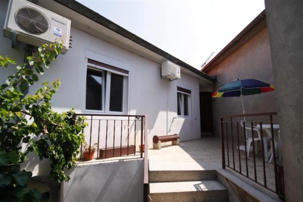 Apartmani su smješteni u tihom jugoistočnom dijelu Zadra, blizu šetališta Kolovare, poznatom po panoramskom pogledu na obližnje otoke i prekrasnim zalascima sunca...samo nekoliko minuta hoda od najlijepših zadarskih plaža i 10-ak minuta vožnje od centra i stare gradske jezgre... Manji apartman u prizemlju (smještaj za 3 osobe): 2 spavaće sobe (jedna sa bračnim krevetom i jedna sa običnim krevetom), kupatilo (WC, tuš), kompletna kuhinja...besplatni WiFi i sat. TV Veći apartman na katu (smještaj za 7 osoba): 3 spavaće sobe (od kojih jedna sa bračnim krevetom, jedna sa bračnim krevetom i običnim krevetom, jedna sa 2 obična kreveta), 2 kupatila (WC, kada, bide), dnevni boravak (kauč, stolić, stol, stolice), kompletna kuhinja, ostava, terasa (plastični stol, sjedalice, suncobran)... Ispred apartmana je dvorište sa besplatnim parkingom i autobusna stanica. Idealan smještaj za obitelji, grupe prijatelja i za ljubitelje prirode. Želimo vam toplu dobrodošlicu i ugodan boravak!