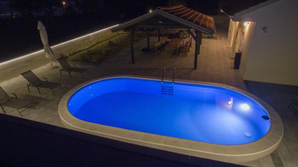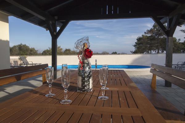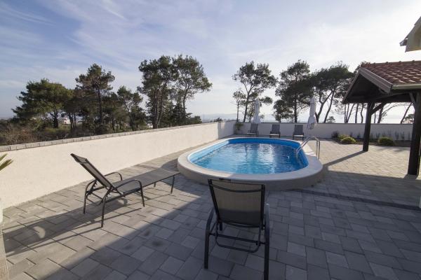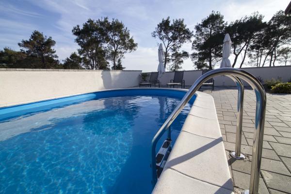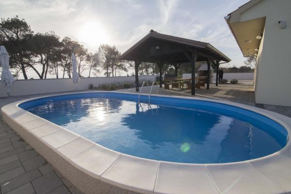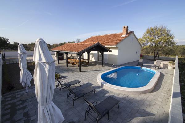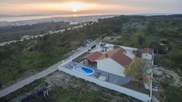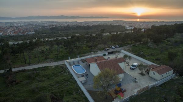 Suvremeno opremljeni apartmani Skroče sa bazenom u mirnom predjelu Zadra sa pogledom na cijeli grad, udaljena svega 3min. od centra i plaže. Prostire se na 10 000m2 privatnog zemljišta na osami i pruža apsolutni mir i osamu. Kompletno opremljena sa svim suvremenim aparatima i nudi mogućnost dodatnog smještaja uz prethodni dogovor.