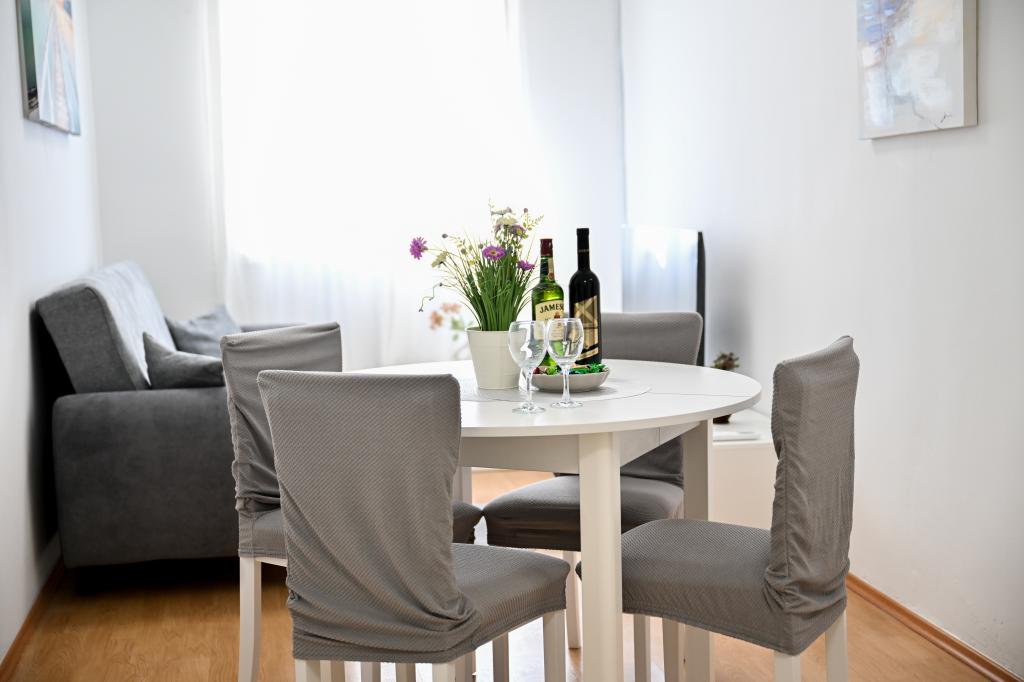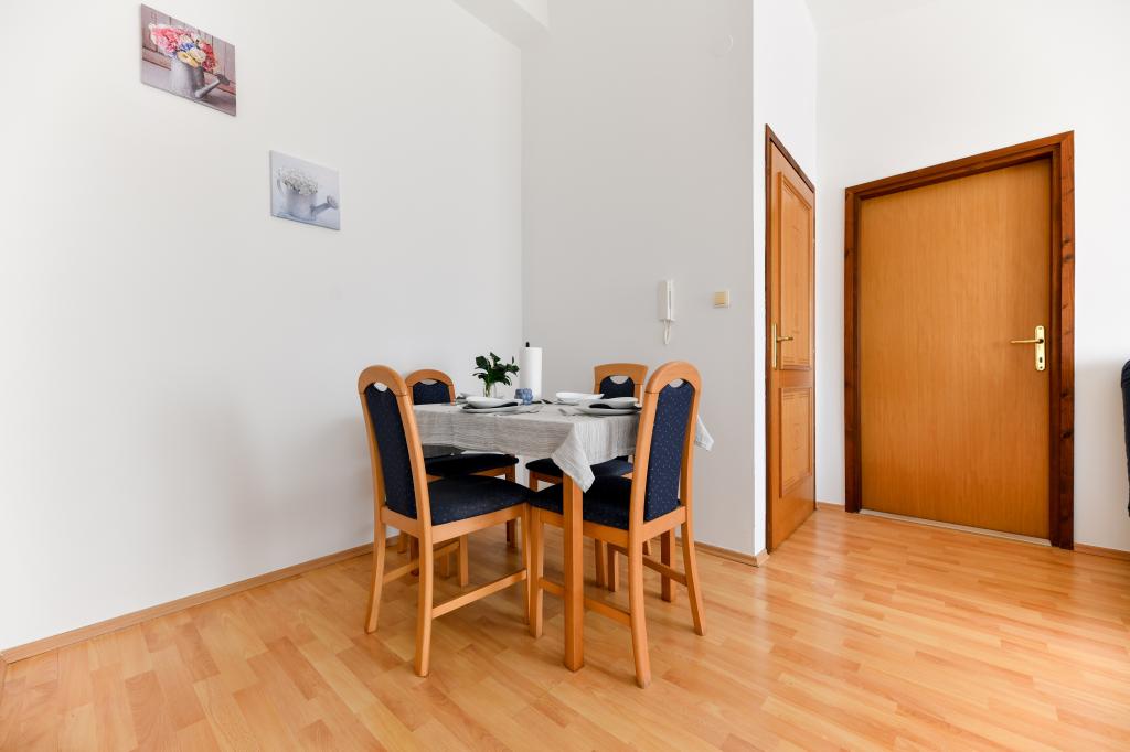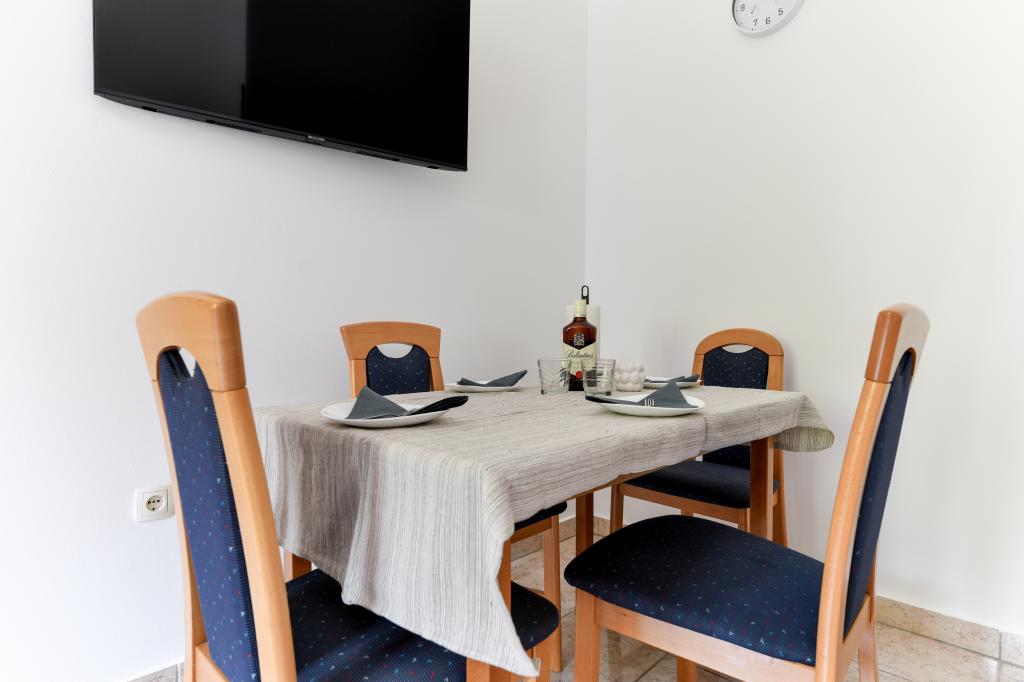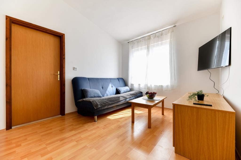 Pročitaj više Smještajne jedinicePrijava u apartman je moguća iza 15:00 h (u slučaju dogovora može i prije), a odjava je isključivo do 10:00 h. Akontacija iznosi 30% ukupne cijene rezerviranog smještaja. Ostatak iznosa se plaća prilikom dolaska i to isključivo gotovinski. Kućni ljubimci nisu dozvoljeni.