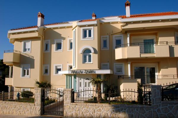 Kompletno i suvremeno opremljeni veliki komforni apartmani u elitnom i mirnom predjelu Zadra, Diklo. Imamo od Studio do velikih 100m2 apartmana sa 2 spavaće sobe. U velike Apartmane može do 6 osoba. Cijena Apartmana je ista bez obzira na broj osoba. Studio 2+1 (2 kreveta plus ležaj), Apartman 4+2 (100m2) (4 kreveta plus 2 ležaja, 2 kupatila, 2 spavaće sobe, velika terasa, balkon...) , Apartman 2+2 (100m2) (bračni krevet plus veliki ležaj, 1 spavaća, 2 wc-a, velika terasa i balkon), Apartman 2+2 (65m2) (bračni krevet, ležaj, terasa...) Objekt se nalazi nekoliko minuta hoda od plaže (100 m) i 200m do centra mjesta. Svaki apartman ima parkirno mjesto. Vanjski veliki roštilj je svim gostima na korištenje.