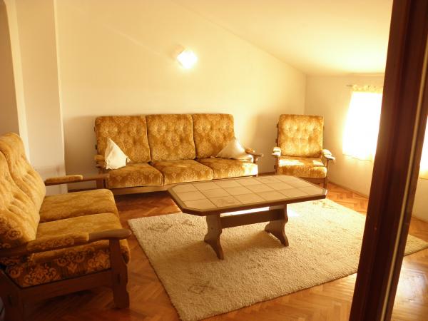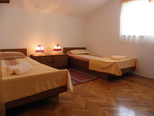 Apartman s balkon i pogledom na more, Digital SAT-TV, koristenje Interneta ( WI-FI )slobodan, besplatno osigurano parkirno mijesto, klima. Kuca se nalazi u turistickom dijelu grada Zadra ( Diklo), oko 200 m od mora, plaze, supermarketa, autobusne stanice. Parkiraliste za nase goste je besplatno i nije potrebna rezervacija ( 12 parkirnih mjesta). Nudimo Vam smjestaj u komfornom Apartmanu (4 1) ca. 85m2, 2 spavace sobe, kuhinja, kupatilo, dnevni boravak, Digital SAT-TV koristenje Interneta ( WI-FI) i balkon s pogledom na more. U ponudi imamo i sobe sa kupatilom. Soba za 2 osobe sa kupatilom velicine ca. 25m2, hladnjak, Digital SAT-TV, Wi-Fi, klima i sjedecom garniturom u dvoristu. Gostima stoji na raspolaganju zajednicka kuhinja. Soba 2 1 za 2-3 osobe sa kupatilom, velicine ca. 55m2, hladnjak, sat-tv, wi-fi, klima i balkon. Isto tako na raspolaganju je zajednicka kuhinja.