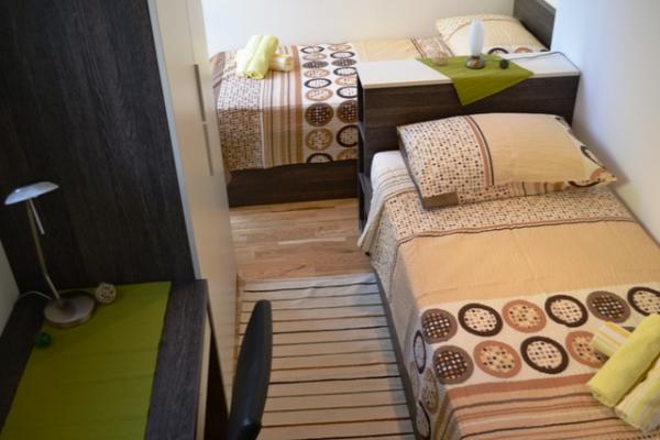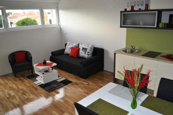 Apartmani za 2+2 osobe, Apartmani za 4 osobe, Studio apartman za 2 osobe, svi na 15 metara od Foruma i crkve sv. Donata. Dva od njih su s direktnim pogledom na crkvu sv.Donata, zadarsku Rivu, a 30 metara udaljen od najvažnije zadarske ulice Kalelarge, dok druga dva imaju direktan ulaz s Kalelarge. Moderno opremljen apartman u srcu grada za potpuni doživljaj Zadra. Apartman je opremljen kablovskom TV, besplatnim Wi -Fi, klimom i modernom - funkcionalnom kuhinjom.