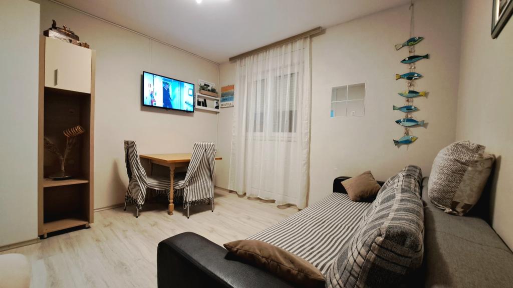 Pročitaj više Smještajne jediniceZa rezervaciju je potrebna uplata akontacije. Osim cijene smještaja naplačuje se dodatno čišćenje 20€ po rezervaciji. Ulaz i izlaz iz apartmana moguć je i bez kontakta sa vlasnikom jer se na ulazu nalazi sef za kljuć čiju kombinaciju dobijete prije dolaska.