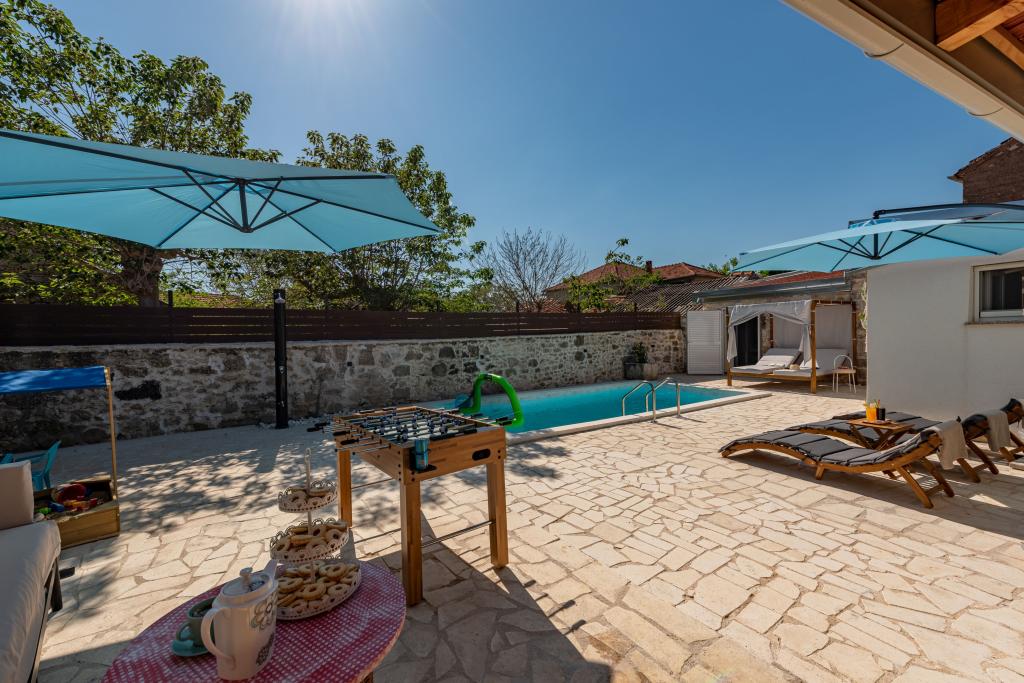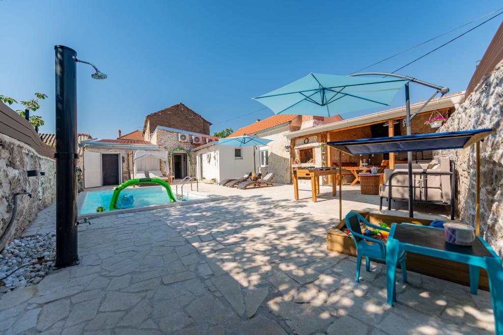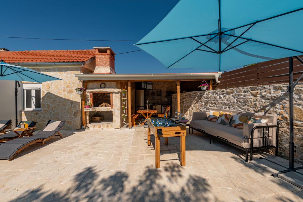 Kuća Filotea izgrađena kamenom prije 80 godina a obnovljena 2024.godine, nalazi se u mjestu Zemunik Donji. Unutarnji prostor je veličine 80 metara kvadratnih a dvorište je veličine 150 metara kvadratnih. Dvorište je ograđeno starim kamenim zidom koji sakriva poglede prolaznika te vam je omogućen odmor u miru i privatnosti. Cijeli objekt je samo vaš, nema direktnih susjeda, vlasnik živi u kući udaljenoj 200 metara od vas. Vanjski bazen, playstation4, 4 Smart TV, stolni nogomet, pikado, pješčanik, unutarnja i vanjska kuhinja, 3 sobe, 3 klima uređaja, 3 kupaonice, privatan parking s 3 mjesta i domaćin koji vam je uvijek na raspolaganju garantiraju vam prekrasan odmor. Dobro došli!