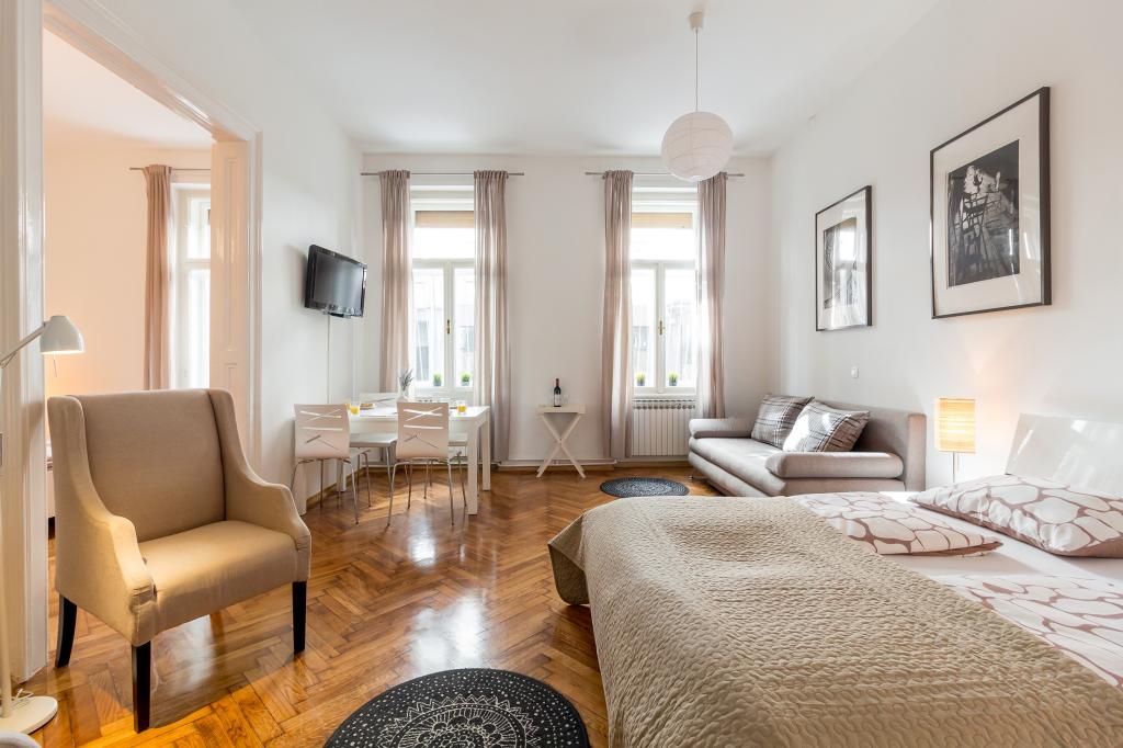 Ovaj Apartman ima dva kreveta, jedan krevet za jednu osobu (90x200cm) i Quinn bračni krevet (140x200cm), malu kuhinju (širine 120cm) i vlastitu kupaonicu s kišnim tušem. ispred stana nalazi se zajednički hodnik koji dijelite s još 3 stana, a tu je i perilica za rublje i glačalo koje slobodno možete koristiti. U zajedničkom hodniku također možete ostaviti svoju prtljagu prije prijave ili nakon odjave ako to trebate učiniti.