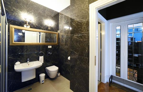 LUKSUZNI APARTMAN - 5 ZVJEZDICA - CENTAR - PJEŠAČKA ZONA - PARKING! Ne morate biti kralj da biste odsjeli u kraljevski uređenom apartmanu. U centru Zagreba, u pješačkoj zoni, možete unajmiti luksuzni Apartman Residence Royal kategoriziran sa 5 zvjezdica, sa duplim ležajem i jednim pomoćnim ležajem. Smješten na četvrtom katu stambene zgrade sa liftom, a nalazi se na minutu hoda od centralnog gradskog trga. Površine je 70 četvornih metara, a sastoji se od ulaznog halla, predsoblja, dnevne sobe s kuhinjom i blagavaonom, spavaće sobe i suvremeno opremljene kupaonice s odvojenim toaletom. Kazalište, katedrala, muzeji, fakulteti, brojne trgovine, restorani i barovi, u neposrednoj su blizini, a zaklonjenost od glavne prometnice osigurava idealne uvjete za duži ili kraći boravak. Obzirom da se apartman nalazi u pješačkoj zoni, osiguran je iskrcaj prtljage i putnika neposredno pred zgradom, a za Vaš automobil na raspolaganju je parking u dvorištu zgrade ili 3 javne garaže u neposrednoj blizin