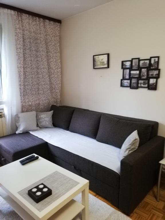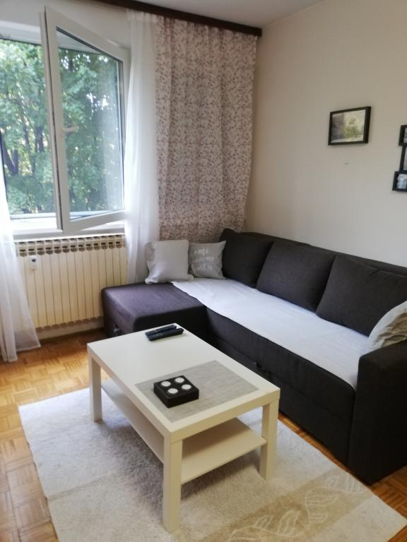 Apartman 40m2 smješten u stambenoj zgradi, pogodan za boravak 1-4 osobe. Potpuno je opremljen, ( kablovska TV, bežični internet, klima) lijepo namješten. Sa sobom trebate donijeti samo dobru volju, ostalo sve u apartmanu imate. U zgradi se nalazi, ljekarna, trgovina, pekarna, kafići. Do apartmana vam treba 3 minute vožnje od Zagrebačkog Velesajma, Muzeja suvremene umjetnosti, Avenue Mall i Hipodroma, jezera Bundek a nisu daleko ni Arena Zagreb i koncertna dvorana Vatroslav Lisinski, od centra grada, željezničkog ili autobusnog kolodvora 10 min vožnje. Gradski prijevoz udaljen je 15 metara od zgrade. Ispred zgrade nalazi se besplatno parkiralište. Ako nas jednom posjetite sigurni smo da nam budete uvijek rado dolazili. Cjenik ovisi o broju osoba, duljini boravka i terminu boravka