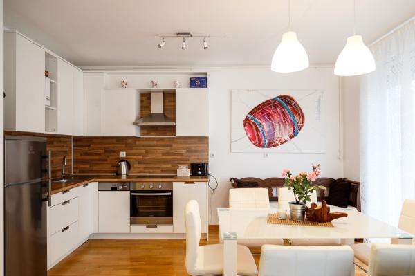 ART LAKE APARTMANI čine 3 luksuzna apartmana sa jacuzzi kadom i velikim balkonima, novim potpuno opremljenim kuhinjama, sobe imaju bračne ili jednokrevetne krevete, koji se nalaze na vrhunskoj lokaciji nadomak centra grada, a prednost ove lokacije je što se nalazi u mirnom, zelenom okruženju, a ipak je blizu centra koji je udaljen svega 10 min. vožnje tramvajem ili automobilom. Ispred zgrade u kojima se apartmani nalaze parkiranje je privatno ograđeno i besplatno. Apartmani A1, A2 i A3 nalaze se u prizemlju, 1 i 2 katu zgrade. Mogu se unajmiti zajedno, te tako primaju i do 16 osoba. Idealan je smještaj jer ima kapacitet do 16 osoba, te za sve koji žele nakratko pobjeći od gradske gužve i uživati ovoj oazi zelenila i mira, a ujedno uživati u našem jezeru Jarun, kavicama, noćnom životu, dobroj hrani, kupanju ili možda raznim sportovima. Okružen je zelenilom, šetnicama, stazama za trčanje, biciklizam, vodene sportove, a isto tako svega 50 metara udaljenosti nalaze se 2 noćna klub