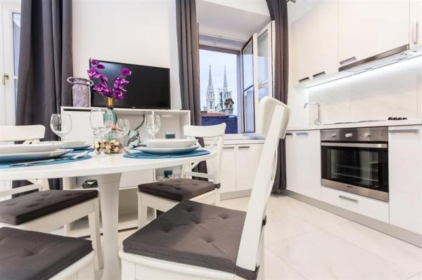 Apartmani ELGRA smješteni su u najužem centru grada Zagreba, u Radićevoj ulici, iznad samog glavnog gradskog Trga bana Josipa Jelačića i nadomak Kamenitih vrata. Apartmani su luksuzno opremljeni i novo uređeni te su idealni za poslovna putovanja i ugodni obiteljski smještaj. Apartmanima posebnu čar daje pogled na vizuru Zagrebačke katedrale i Tkalčićevu ulicu bogatu restoranima i kafićima te blizina mnogih povijesnih i kulturnih znamenitosti. Apartman 1 sastoji se od dnevnog boravka, moderno opremljene kuhinje sa blagovaonom, dvije spavaće sobe i kupaone. Apartman je opremljen kompletnom tehničkom opremom koja uključuje LCD TV, SAT (MAX TV), WI-FI, perilicu rublja i posuđa te je klimatiziran i ima etažno grijanje. Apartman 2 sastoji se od dnevnog boravka sa kuhinjom, komforne spavaće sobe i kupaone. Opremljen je sa LCD TV, SAT (MAX TV), WI-FI, klima uređajem i etažnim grijanjem.