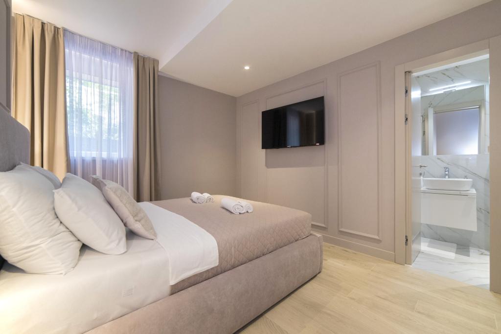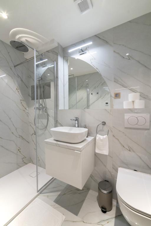 Pročitaj više Smještajne jediniceSvi apartmani nalaze se u suterenu zgrade, potpuno renoviranom u srpnju 2025., i uređeni su u modernom, elegantnom stilu kako bi osigurali maksimalnu udobnost. Check-in je moguć od 15:00 sati, a check-out do 10:00 sati. Rani dolazak ili kasniji odlazak mogući su ovisno o raspoloživosti – molimo da nas kontaktirate dan ranije radi dogovora. Gostima je uvijek na raspolaganju ostava za prtljagu. Pušenje i održavanje zabava u apartmanima strogo je zabranjeno. Napominjemo da nismo hotel niti aparthotel, već privatni kompleks apartmana. To znači da nema 24-satne recepcije ni svakodnevnog čišćenja. Ipak, naši domaćini žive u blizini i dostupni su vam za svu potrebnu pomoć. Ulazak u zgradu i apartmane osiguran je pomoću šifri koje šaljemo na dan dolaska. Posebna ponuda za direktne rezervacije: gosti koji rezerviraju izravno ostvaruju 10% popusta u odnosu na cijene na Booking.com-u. Cijene prikazane na Apartmanija.hr su informativne i mogu varirati. Za potvrdu rezervacije potrebno je uplatiti akontaciju od 50%.