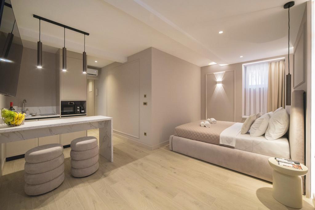 Otvoreni u srpnju 2025., nudimo 12 moderno uređenih i udobnih apartmana na mirnoj, a centralnoj lokaciji u Zagrebu. Smješteni su u potpuno renoviranom suterenu zgrade. Svaka jedinica ima bračni krevet, a dva najveća apartmana mogu primiti i treću osobu uz pomoć pomoćnog kreveta. Apartmani imaju vlastitu kupaonicu s potrebnim sadržajima i svježim ručnicima za svakog gosta. Devet studija raspolaže malom kuhinjom opremljenom hladnjakom, pločom za kuhanje, mikrovalnom pećnicom, kuhalom za vodu i osnovnim posuđem – idealno za pripremu laganih obroka. Deluxe sobe nemaju kuhinju ni hladnjak, ali nude jednaku razinu udobnosti. Sve smještajne jedinice klimatizirane su, s podnim grijanjem i zvučno izoliranim prozorima, što osigurava ugodan boravak tijekom cijele godine. Omogućen je jednostavan samostalni check-in putem šifre, a naši domaćini dostupni su za sva pitanja i pomoć tijekom vašeg boravka.