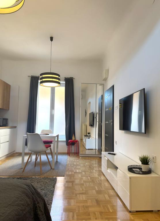 Apartmani u srcu Zagreba – Frankopanska 11 Tražite savršen smještaj u centru Zagreba? Na prestižnoj lokaciji u Frankopanskoj ulici nudimo tri moderno uređena apartmana idealna za kraći ili duži boravak. Ponuda smještaja: Jednosobni apartman (50 m²) – prostrani apartman koji uključuje potpuno opremljenu kuhinju, udoban dnevni boravak, zasebnu spavaću sobu i kupaonicu. Pogodan za do 4 osobe. Dva studio apartmana (cca 30 m²) – kompaktni, ali funkcionalni prostori s kapacitetom za 3 osobe i 2 osobe, savršeni za parove ili solo putnike. Kuhinje su potpuno opremljene: Perilica posuđa Mikrovalna pećnica Kuhalo za vodu Svi potrebni kuhinjski pribori i posuđe za potpuni doživljaj kuhanja Lokacija koja oduševljava: U strogoj pješačkoj zoni, okruženi trgovinama, muzejima, restoranima i kafićima 7 minuta hoda do glavnog zagrebačkog trga (Trg bana Jelačića) 3 minute hoda do Hrvatskog narodnog kazališta (HNK) Tramvajska stanica udaljena samo 50 metara