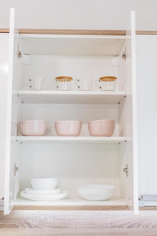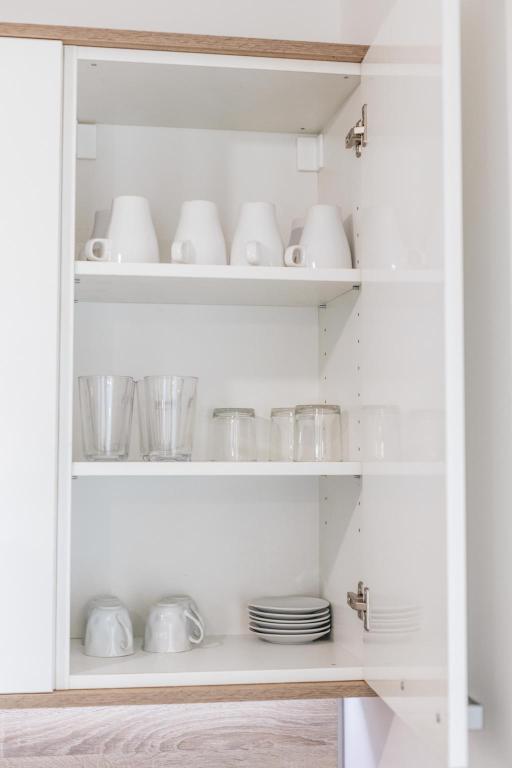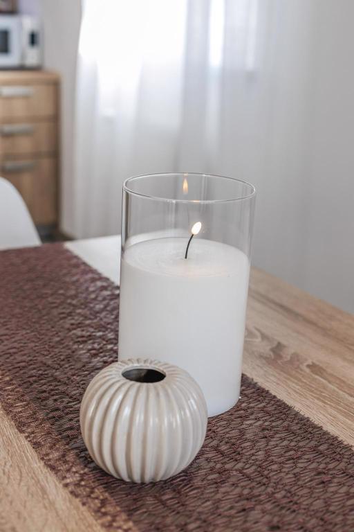 U apartmanu vas, osim naznačene standardne opreme, očekuju dvije vrste kave, čokoladne praline, jednokratne papučice za kupaonicu, mini gelovi za tuširanje, sol za kupanje i sl. sitnice koje će vaš boravak učiniti ugodnijim.
