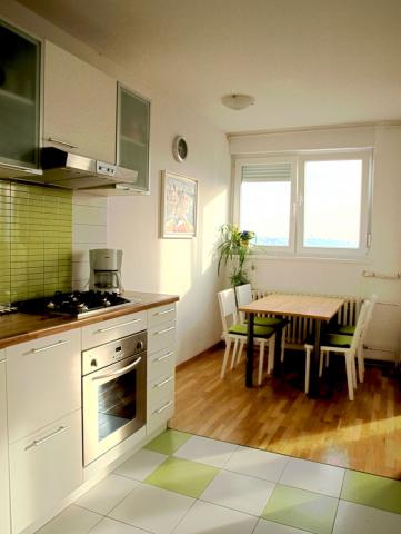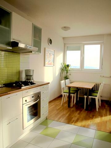 slobodno od 18. 6. 2015 Apartmani se nalaze u stambenoj zgradi u blizini centra zagreba, samo 10 minuta od Trga bana jelačića. Prvi apartman je za 4-5 osba, površine od 64 m2 na zadnjem katu s jugo-istočnom orjentacijom i prekrasnim pogledom na cijeli grad. Dnevni boravak se može koristiti kao druga spavaća soba dok vam kuhinja i balagavaonica pružaju dosta prostora za dnevne aktivnosi. Drugi apartman je za 2-4 osobe i površine od 45m2 orjentiran na jug i sa lijepim pogledom na grad Zagreb. Oba apartmana su sa jednom spavaćom sobom, kuhinjom s balagavaonicom, kupaonicom dnevnim boravkom i lođom. Lokacija je dobro povezana sa ostatkom grada javnim gradskim prijevozom (tramvaj i autobus) U neposrednoj blizini su dućani i restorani, dom zdravlja i bolnica Sv. Duh i Dom sportova Uz zgradu je i veliko besplatno parkiralište gdje ćete bez problema naći mjesto za vaš automobil Besplatni WIFI internet, DVD, kabelska televizija, perilica rublja, glačalo i daska za glačanje...