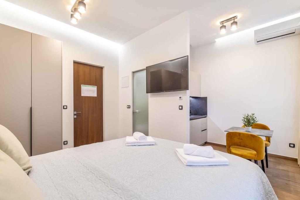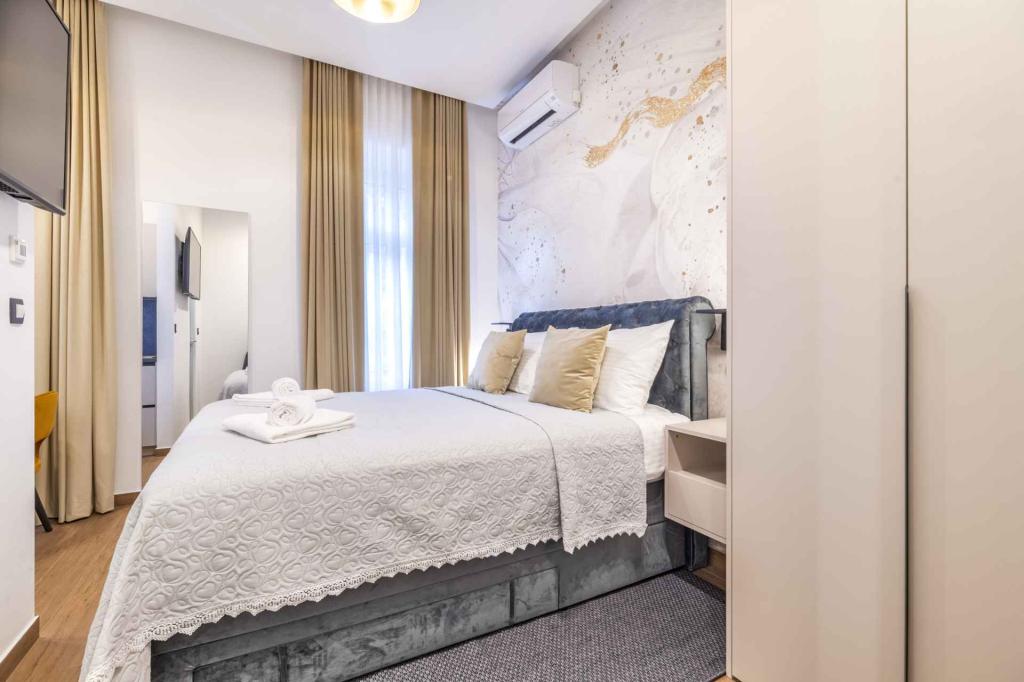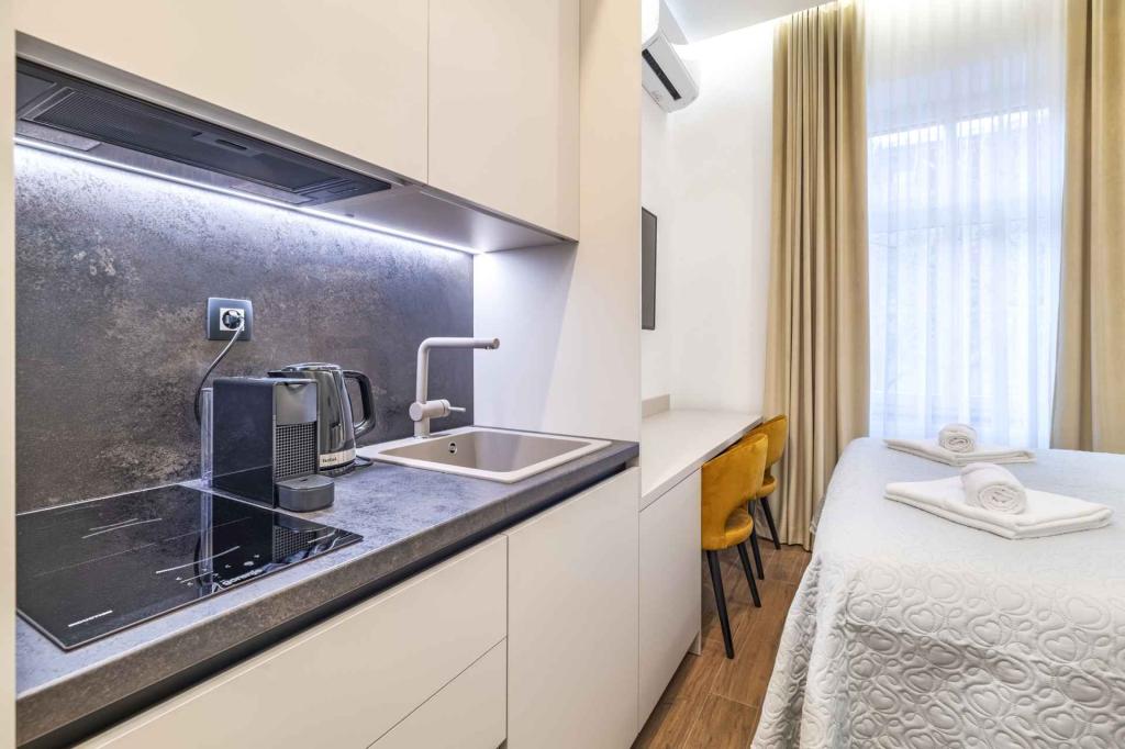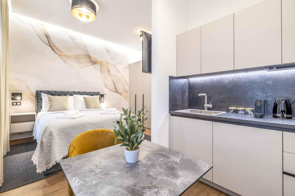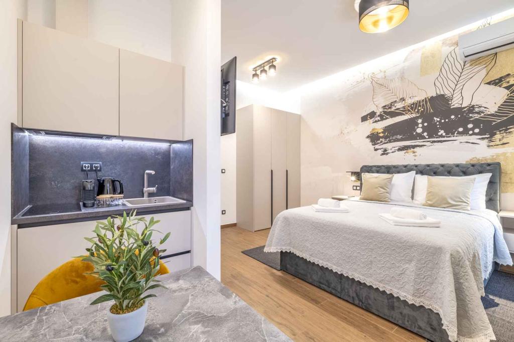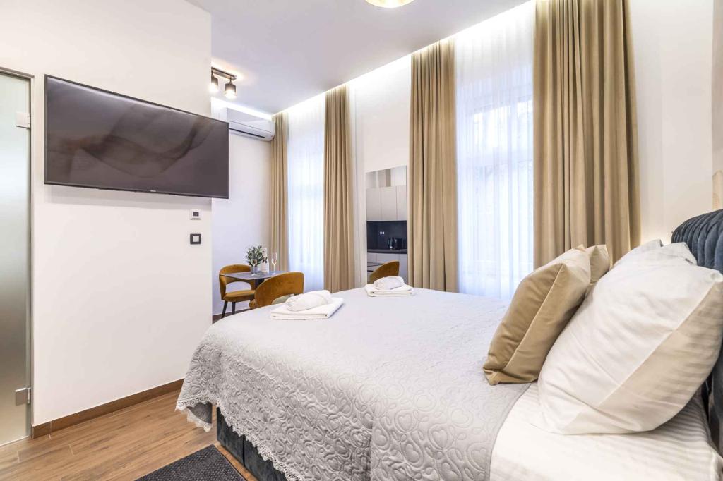 ZAGABRIA Boutique Studio Apartments smješteni su u srcu Zagreba, svega 30 metara od Trga bana Jelačića. Moderno uređeni apartmani nude luksuznu udobnost, super brzi Wi-Fi, pametne brave za 24/7 ulazak i potpuno opremljene kuhinje. Idealni su za poslovne goste i turiste, uz vrhunsku lokaciju u blizini kulturnih znamenitosti, trgovina i restorana. Osim modernih sadržaja, gosti mogu uživati u mirnoj atmosferi i praktičnosti blizine javnog prijevoza. Svi naši apartmani nude luksuz i funkcionalnost. Uređeni su modernim namještajem, s prostranim krevetima dimenzija 200x160 cm, pametnim TV-om s kabelskim programima i potpuno opremljenim kuhinjama (Nespresso aparat, hladnjak, posuđe). Apartman 8 uključuje dodatni dnevni boravak i ležaj za dvije osobe. Moderno uređene kupaonice dolaze s tušem, sušilom za kosu i osnovnim toaletnim potrepštinama. Gosti također mogu uživati u super brzom optičkom internetu i klimatizaciji u svim prostorijama.