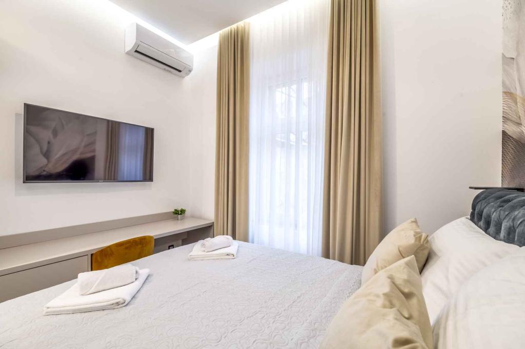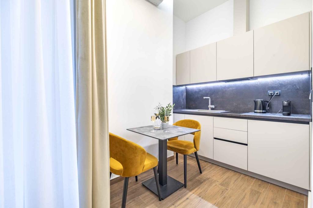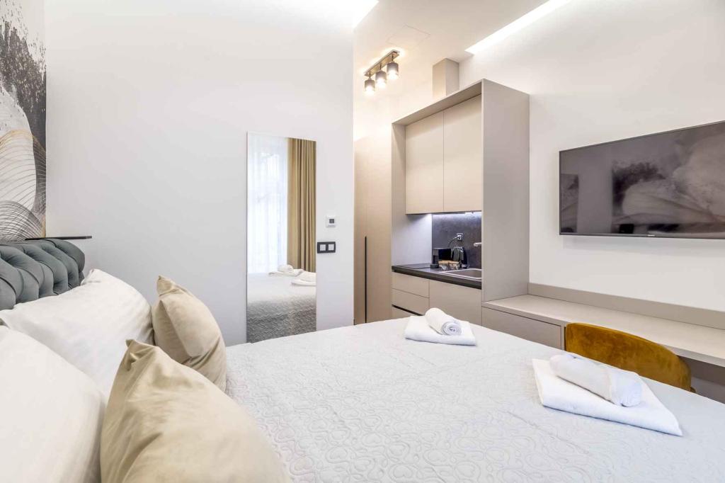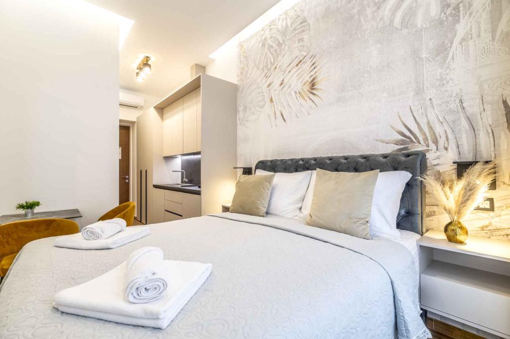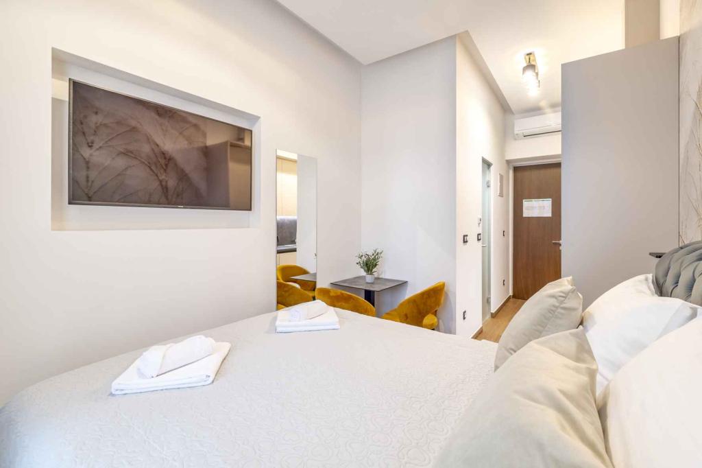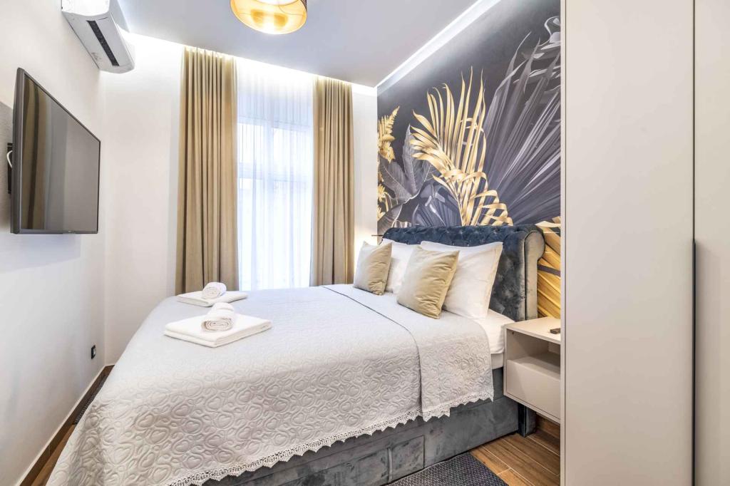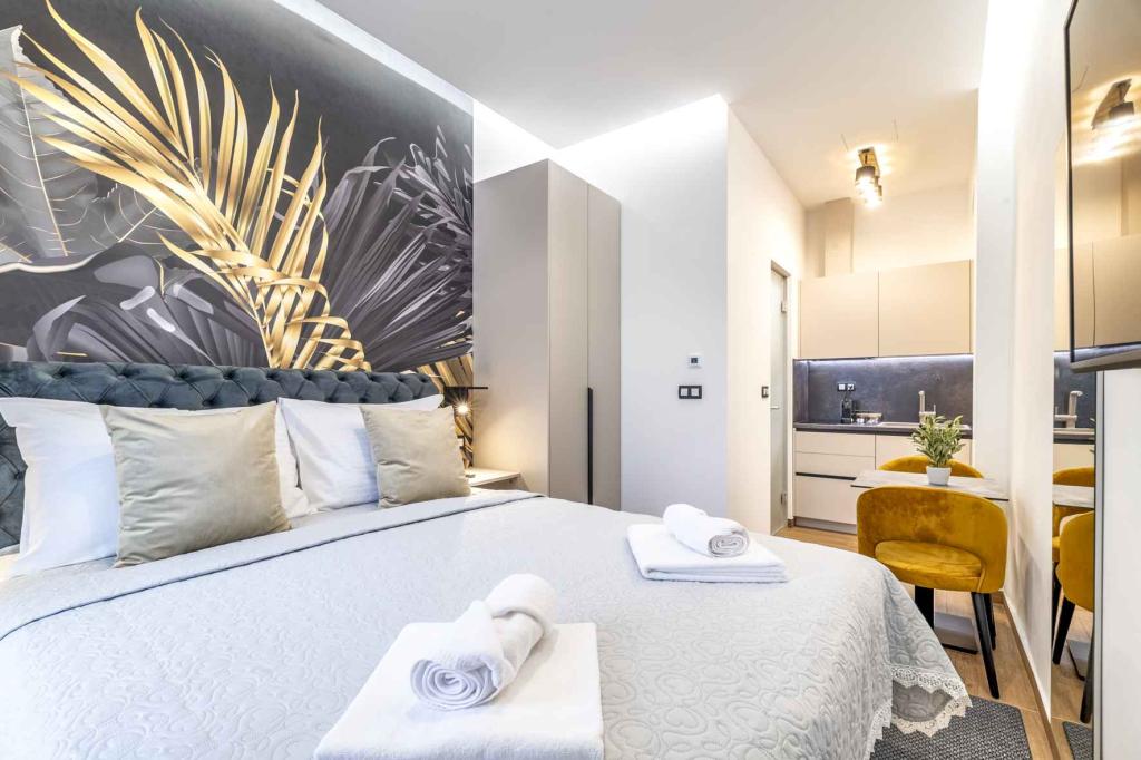 ZAGABRIA Boutique Studio Apartments smješteni su u srcu Zagreba, svega 30 metara od Trga bana Jelačića. Moderno uređeni apartmani nude luksuznu udobnost, super brzi Wi-Fi, pametne brave za 24/7 ulazak i potpuno opremljene kuhinje. Idealni su za poslovne goste i turiste, uz vrhunsku lokaciju u blizini kulturnih znamenitosti, trgovina i restorana. Osim modernih sadržaja, gosti mogu uživati u mirnoj atmosferi i praktičnosti blizine javnog prijevoza. Svi naši apartmani nude luksuz i funkcionalnost. Uređeni su modernim namještajem, s prostranim krevetima dimenzija 200x160 cm, pametnim TV-om s kabelskim programima i potpuno opremljenim kuhinjama (Nespresso aparat, hladnjak, posuđe). Apartman 8 uključuje dodatni dnevni boravak i ležaj za dvije osobe. Moderno uređene kupaonice dolaze s tušem, sušilom za kosu i osnovnim toaletnim potrepštinama. Gosti također mogu uživati u super brzom optičkom internetu i klimatizaciji u svim prostorijama.