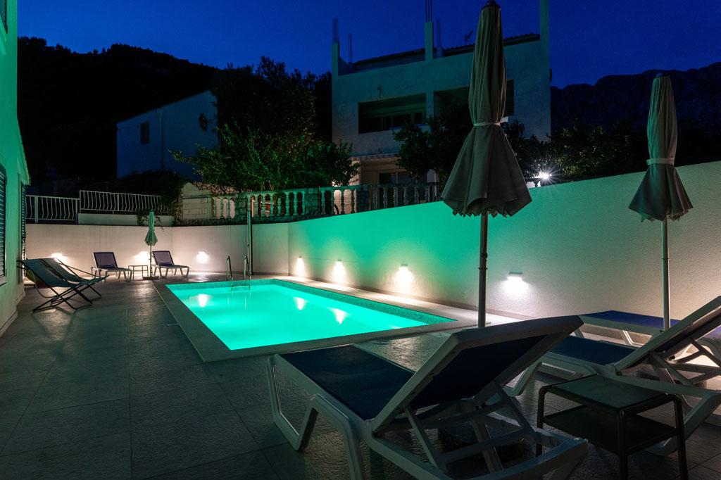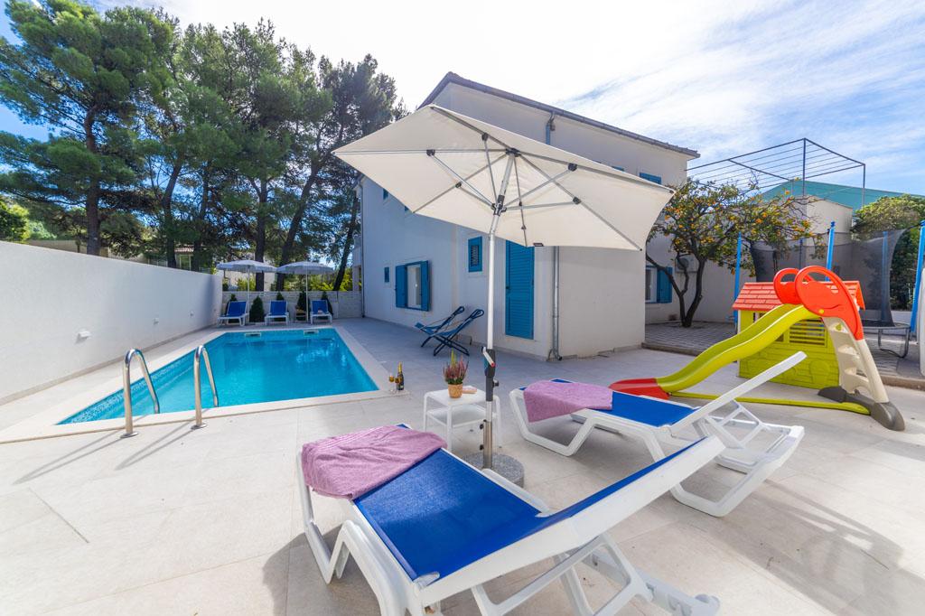 Bazen oko kojeg je prostor za sunčanje i rekreaciju i dječije igralište. U cijenu osim našeg gostoprimstva i srdačnosti uključeni su autohtoni dalmatinski proizvodi u vidu jela i pića kao znak dobrodošlice. Besplatno nudimo pomoć pri informiranju i organizaciji aktivnosti vezanih uz vaš odmor. Na raspolaganju smo od 0-24h za bilo kakve upite i potražnju.