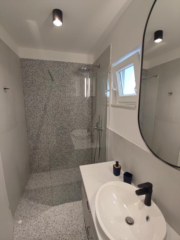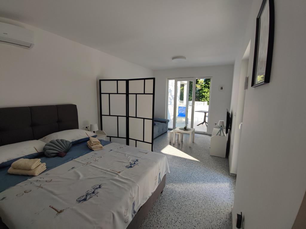 Prekrasan, moderno namješten apartman s visokokvalitetnom kuhinjom, spavaćom sobom s novim modernim namještajem i udobnim krevetom te lijepom, elegantnom kupaonicom. Vrlo lijep, ljubazan domaćin, uvijek na pomoći, daje puno savjeta i informacija, vrlo gostoljubiv. Bazen se ne vidi s ulice, potpuno nov, trajno održavan. Male udaljenosti do mora, restorana i shoppinga. Vlastiti parking na posjedu. Hvala vam na prekrasnom i opuštajućem odmoru.