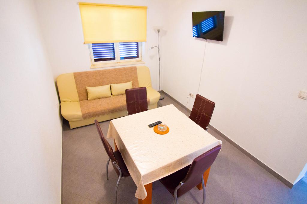 Pročitaj više Smještajne jedinice- Za vrijeme dužeg boravka zamjena posteljine se vrši svakih 7 dana, a ručnika po potrebi i češće. - Dnevni najam, boravišna taksa, posteljina, ručnici, opremljena kuhinja s potrebnim posuđem i priborom, utrošak vode, struje i plina, klima, bežični internet i parkirno mjesto su uključeni u cijenu aranžmana. - Akontacija je 30% od ukupne cijene aranžmana. Plaćanje akontacije se vrši uplatom novca na bankovni račun. Ostatak do pune cijene dogovorenog aranžmana plaća se kod dolaska.