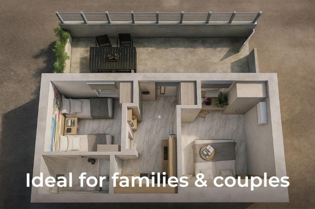 Boravili smo 4 noći u apartmanu Arka, s malom bebom. Apartman je izuzetno čist i uredan, opremljen apsolutno svim što je potrebno za boravak, naročito kuhinja u kojoj ništa ne fali. Sve navedeno u opisu je tačno, blizina mora, plaže, trgovina. Domaćini su veoma ljubazni i susretljivi. Bilo je veoma ugodno i zaista smo se odmorili. Radujemo se ponovnom dolasku u apartmane Marula.
