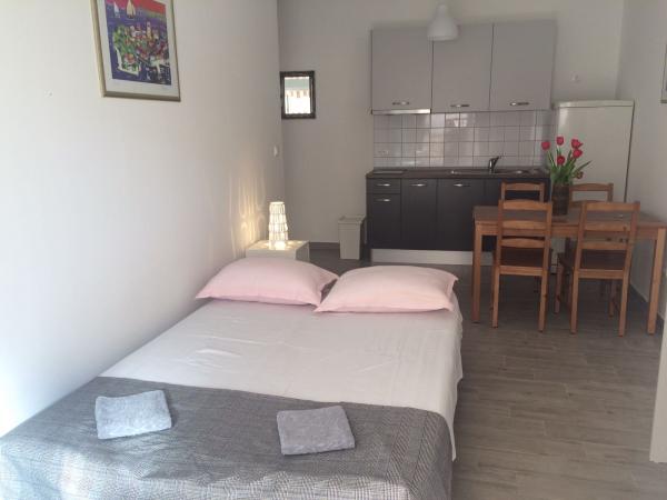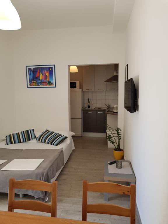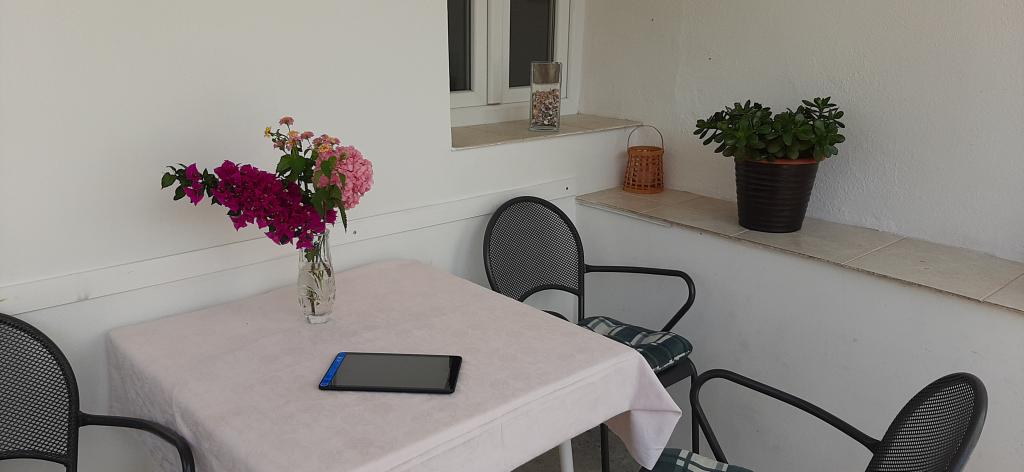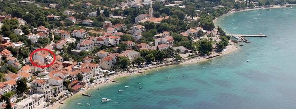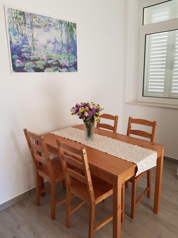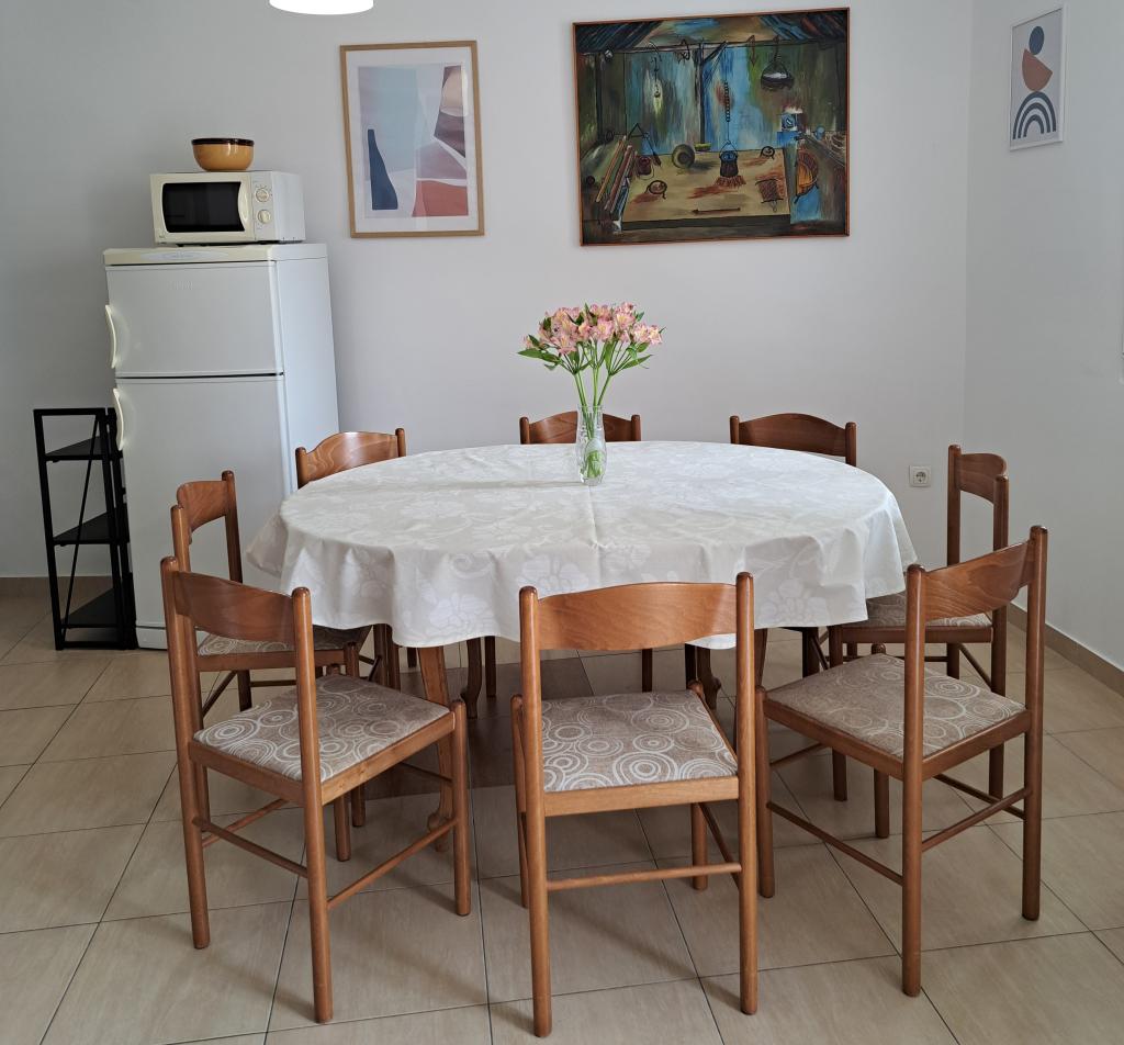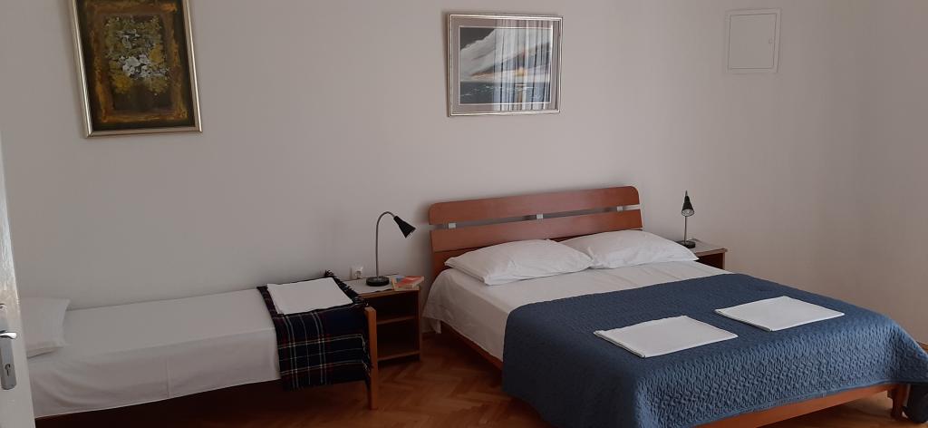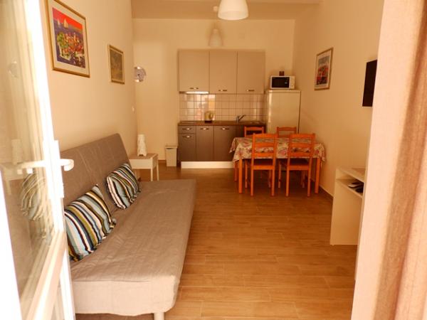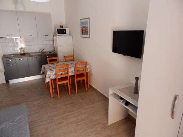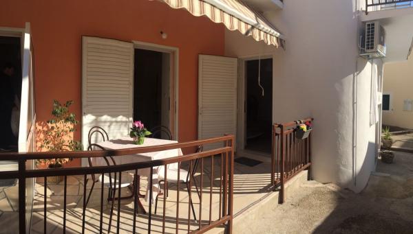 AApartman A2 2 nalazi se u prizemlju obiteljske kuće. Sastoji se od sobe s krevetom (160x200cm), dnevnog boravka s kaučom (160x200cm), kuhinje, kupaonice i terase. Apartman A2 3 nalazi se u prizemlju obiteljske kuće. Sastoji se od sobe s krevetom (160x200cm) i krevetom (90x200cm), dnevnim boravkom s kaučom (160x200cm), kuhinjom, kupaonicom i terasom. Apartmani su potpuno adaptirani. Prilaz na terasu je jednostavan za kolica i bicikle. (samo tri stepenice). Ulica je mirna i samo za pješake. Apartman A-10 1(A-8 3) nalazi se na prvom katu. Sastoji se od jedne četvoro krevetne sobe, dvije trokrevetne, dvije kuhinje, velikog predsoblja, tri kupaonice, tri balkona i terase na ulazu, udaljene 40 m od plaže. Ulaz je zaseban iz pješačke ulice. Oba apartmana imaju osigurane parkinge i flat internet.