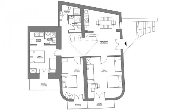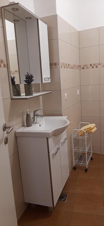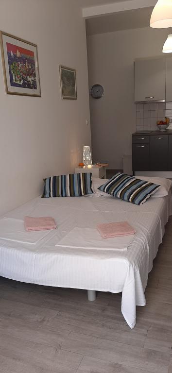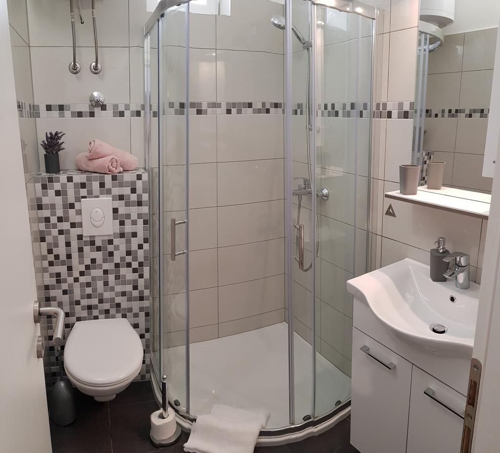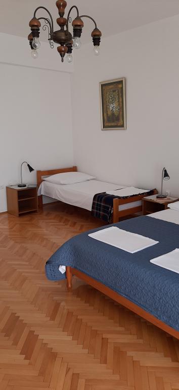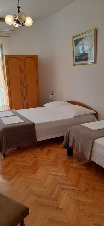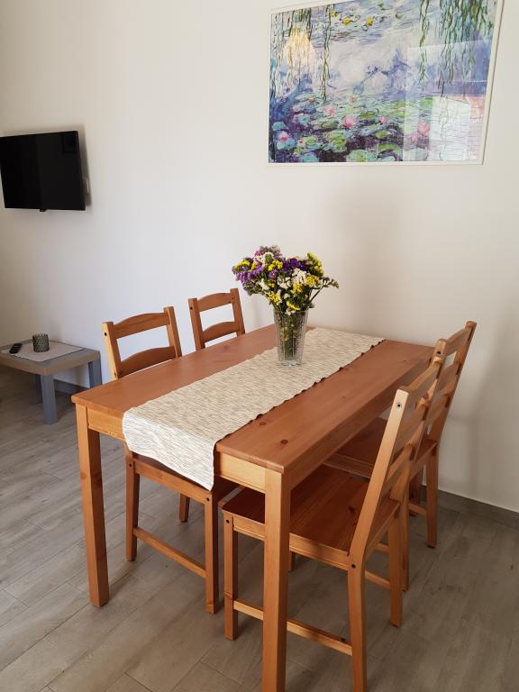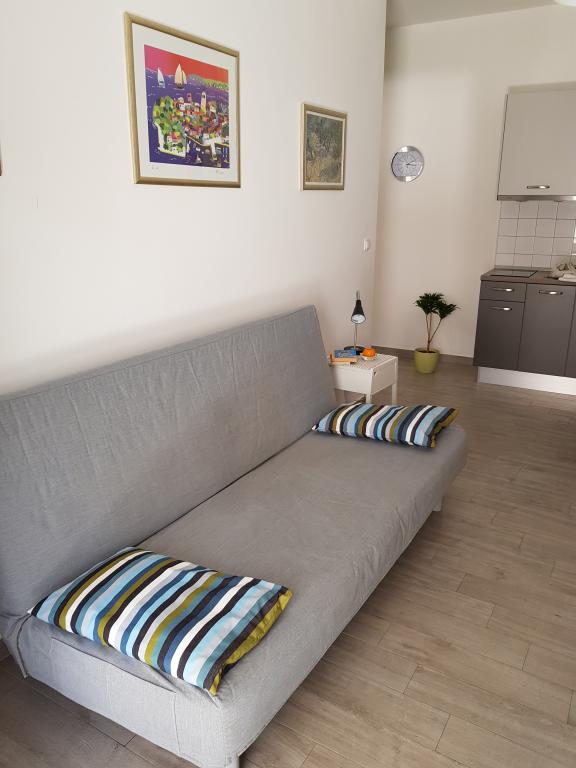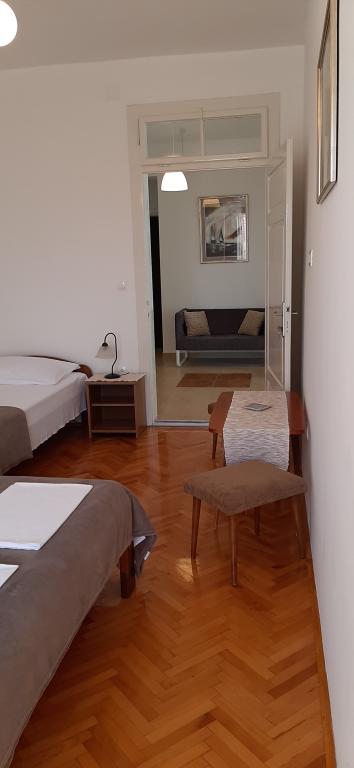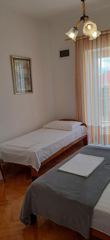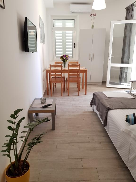 AApartman A2 2 nalazi se u prizemlju obiteljske kuće. Sastoji se od sobe s krevetom (160x200cm), dnevnog boravka s kaučom (160x200cm), kuhinje, kupaonice i terase. Apartman A2 3 nalazi se u prizemlju obiteljske kuće. Sastoji se od sobe s krevetom (160x200cm) i krevetom (90x200cm), dnevnim boravkom s kaučom (160x200cm), kuhinjom, kupaonicom i terasom. Apartmani su potpuno adaptirani. Prilaz na terasu je jednostavan za kolica i bicikle. (samo tri stepenice). Ulica je mirna i samo za pješake. Apartman A-10 1(A-8 3) nalazi se na prvom katu. Sastoji se od jedne četvoro krevetne sobe, dvije trokrevetne, dvije kuhinje, velikog predsoblja, tri kupaonice, tri balkona i terase na ulazu, udaljene 40 m od plaže. Ulaz je zaseban iz pješačke ulice. Oba apartmana imaju osigurane parkinge i flat internet.