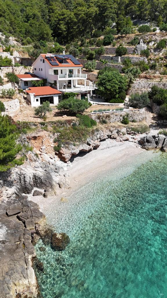 Kuća za odmor na idiličnom mjestu, tik uz more, plaža odmah ispod kuće, šljunčana, prekrasno, čisto more. Apartmani su prostrani i izuzetno čisti, opremljeni svime što je potrebno za ugodan odmor. Prekrasan pogled na more sa terase. Do kuće je moguć pristup automobilom. Vlasnik je ljubazan i od velike pomoći. Mali dućan u susjednoj uvali - 10 min hoda. Vrhunski odmor! Preporučamo svima koji vole mir i čistu prirodu, rado se vraćamo svake godine!