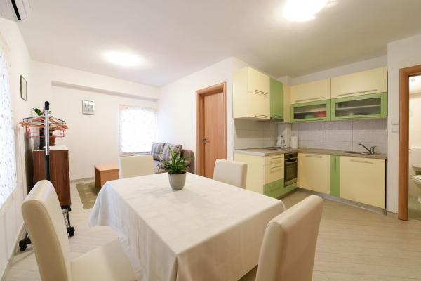 Pročitaj više Smještajne jediniceU trenutku rezervacije potrebno je izvršiti uplatu akontacije u iznosu od 20% cijene. Ostatak se plaća po dolasku. Check in: od 14,00h (po dogovoru i ranije). Check out: do 10,00h (po dogovoru i kasnije). Uvođenje životinja dozvoljeno je samo uz suglasnost domaćina i uz određenu nadoplatu te poštivanje kućnog reda. Parking, korištenje klima uređaja i pristup internetu je uračunato u cijenu. https://www.facebook.com/apartmani.m.zaton/