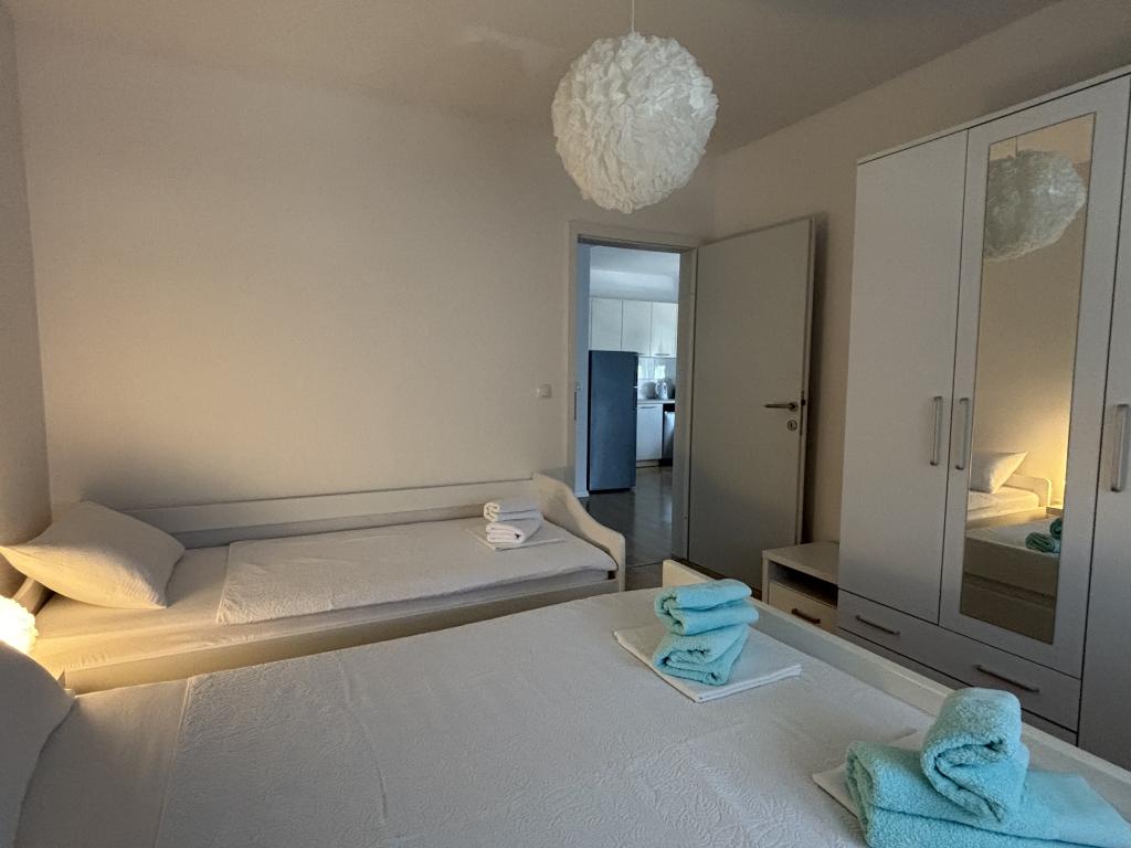 Boravak u ovom stanu na moru bio je zaista savršen! Stan je izuzetno čist, prostran i opremljen svime što je potrebno za ugodan odmor. Lokacija je odlična – blizu mora sa plažom za djecu i ljubitelje odbojke i picigina, trgovina i restorana, a opet dovoljno mirna za potpuni odmor. Domaćini su izvanredni – ljubazni, gostoljubivi i uvijek dostupni za sve informacije ili pomoć. Odmah smo se osjećali kao kod kuće, a njihova srdačnost i pažnja prema detaljima učinili su naš boravak još posebnijim. Toplo preporučujem ovaj smještaj svima koji žele bezbrižan i ugodan odmor na moru. Sigurno se vraćamo opet!