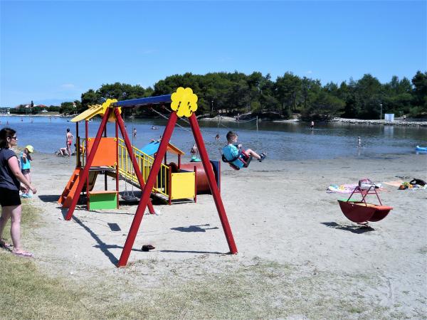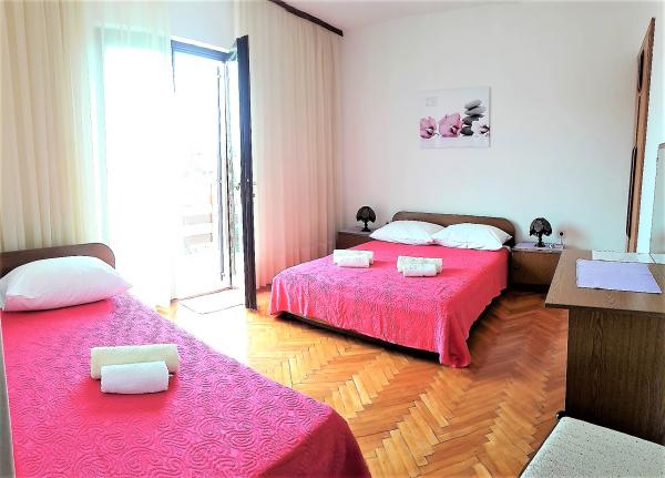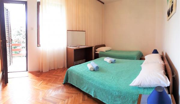 House Irena je apartman za deset osoba - na prvom katu kuće nalaze se sobe (dvije trokrevetne spavaće sobe s balkonom, dvije dvokrevetne sobe i dvije kupaonice), u hodniku se nalazi klima uređaj (na prvom katu). U prizemlju se nalazi kuhinja, terasa i roštilj (u prizemlju se nalaze vlasnici kuće - zajednički hodnik). Kuća se nalazi tik uz obalu, 10 metara od pješčane plaže, ima vanjski tuš, dovoljno parkirnog mjesta, Wi-Fi i TV (SAT).