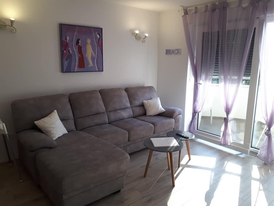 Novi, moderno i ukusno opremljen apartman s dvije spavaće sobe, klimom u svakoj, s pogledom na more, 20 m od plaže (preko ceste).