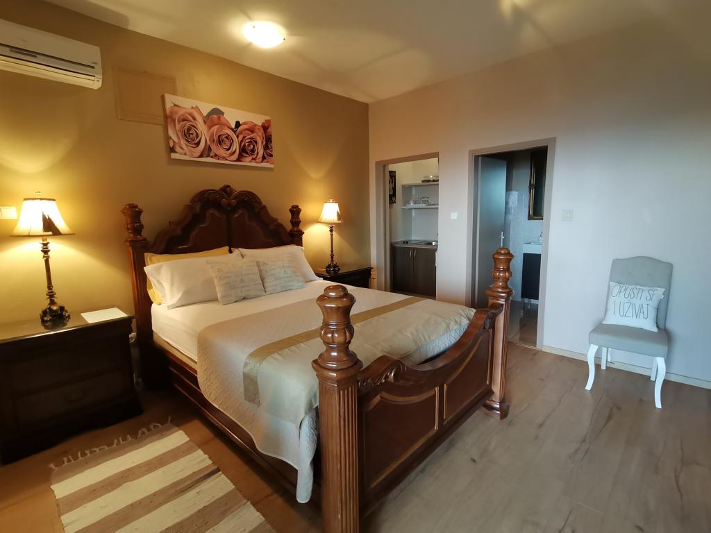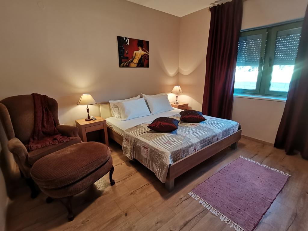 Naša obiteljska kuća se nalazi direktno na moru, odmah dostupna plaža, s prekrasnim pogledom na otvoreno more, uz prekrasno uređenu okućnicu, idealno za opuštanje u mirnom okruženju. Nudimo 4 kompletno opremljena apartmana, ugodno opremljena za boravak. Objekt se nalazi 10 minuta hoda od popularnog Holiday Resorta Zaton, koji je raj za obitelji s djecom. Svaki apartman ima svoj zaseban ulaz i svoju vlastitu terasu. Parking osiguran.