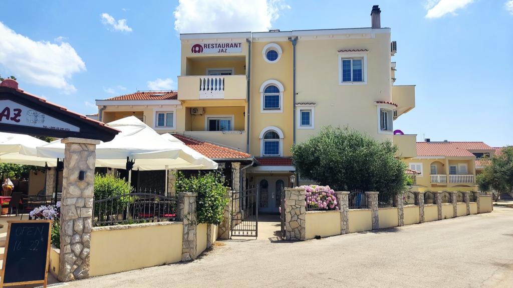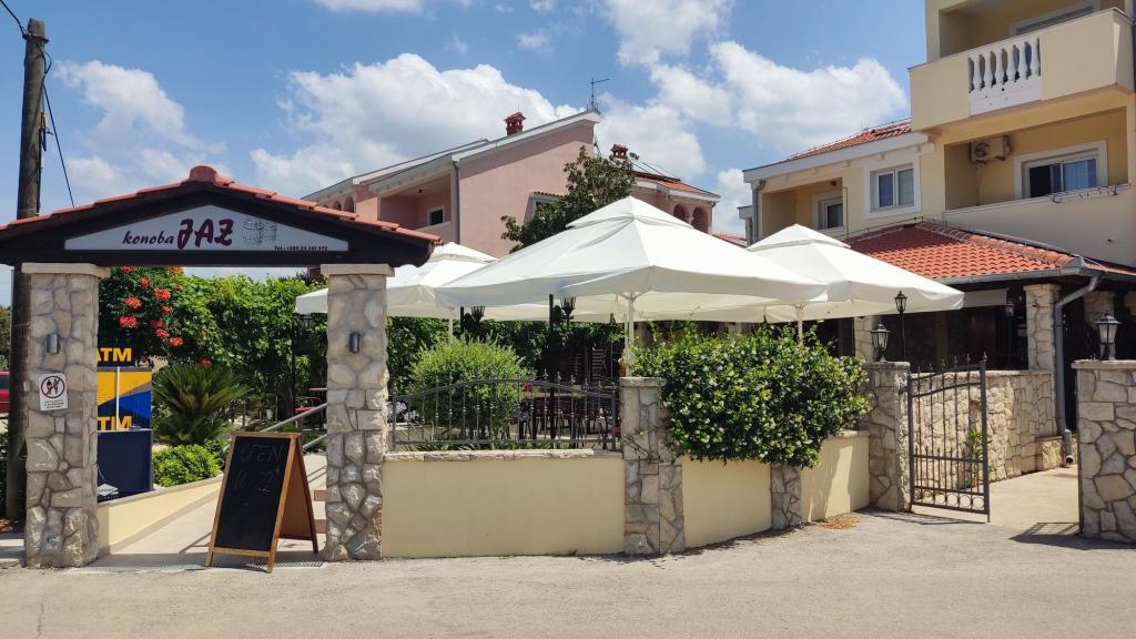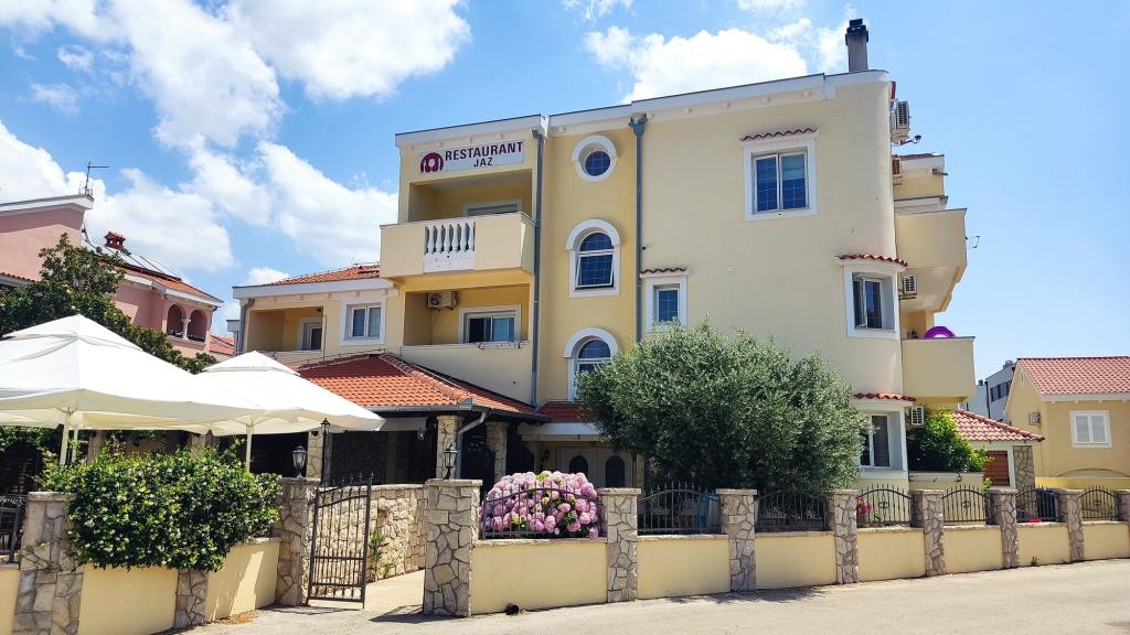 Apartmani Jazz nalaze u neposrednoj blizini. Holiday Resorta Zaton. , Smješteni su prvi red do mora, a tu se nalazi i prostrano, ograđeno dječje igralište. U sklopu Apartmana Jazz nalazi se obiteljski restoran u kojem možete po vašoj želji uživati u domaćoj hrani i ugodnom ambijentu. Za goste koji uživaju u pripremanju vlastitog roštilja imamo vanjski roštilj. Plaža je pješčana raspolaže, tuševima i svlačionicama, a na njoj možete iznajmiti suncobrane, ležaljke i pedaline Apartmani Jaz idealan su izbor za vaše obiteljsko ljetovanje i miran godišnji odmor