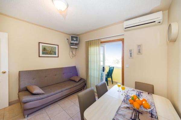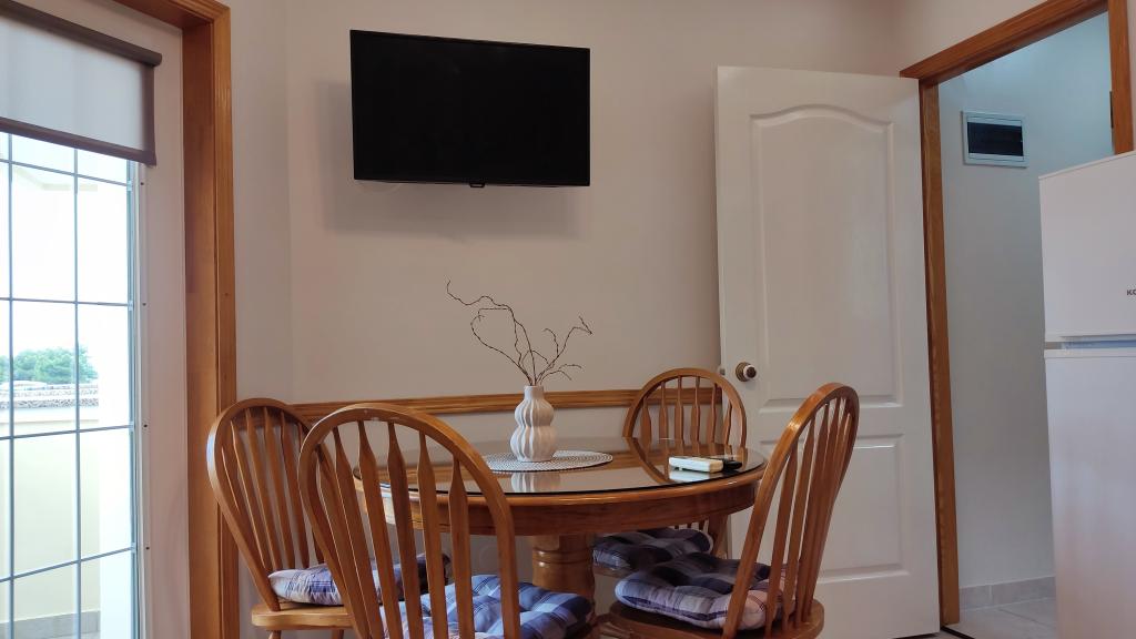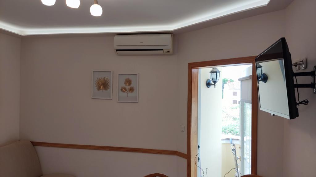 Turistička pristojba je uključena u cijenu. Šaljemo pismenu potvrdu rezervacije (voucher)Bili smo smješteni u 2+1 sobi. Apartman je bio čist i mirisan. More direktno preko puta. Direktan pogled na more i zalazak sunca...jedini mali minus je nedostatak prostora za tri osobe, ali može se snaći. I vodu je bilo užasno teško prilagoditi - bilo ledena, bilo vruća, ali to su zapravo samo sitnice. Vlasnik je bio susretljiv. Na zahtjev nam je dala i dodatne ručnike bez nadoplate ili bilo kakvih drugih riječi. .U blizini se nalazi i izletište, koje u večernjim satima nudi restoranske štandove i sl. stvarno preporučam