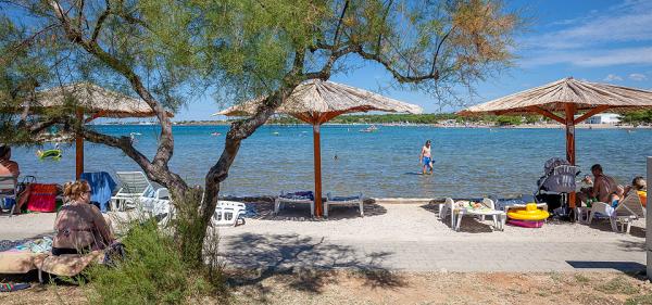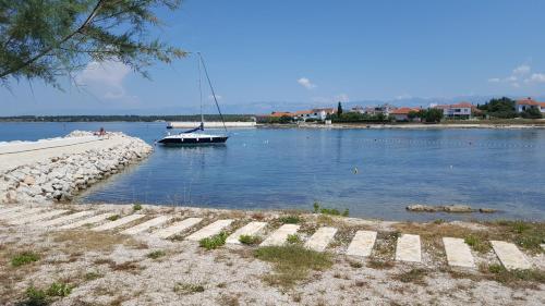 Preporuka za gđu. Mirjanu i njen smještaj. Suprug i ja smo proveli 7 predivnih dana. Gospođa je nenametljiva, vrlo blaga i susretljiva, prava domaćica. Smještaj u potpunom opremljenom studiju je bio odličan, sve nas je dočekalo uredno i čisto. Domaćica nas je počastila svojim domaćim paradajzom i krastavcima (izgleda da se sažalila nad našom sudbinom jer kod nas kući što nisu uništili nametnici i sunce uništio je nedavni led). Dovoljno mjesta za parkiranje. Lijepo uređeno dvorište. Najbliža plaža je doslovno par koraka od kuće. Plaža je uredna, vanjski dio betoniran, a u moru je pijesak. Ima i 2 tuša s toplom vodom. Trgovine, restorani, crkva... sve je blizu. Auto nam uopće nije trebao. Palili smo ga jedino kad smo išli na koncert na Vir i Aqua park u Biograd.