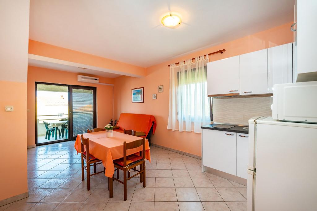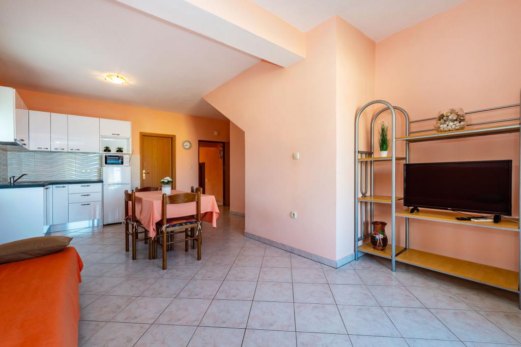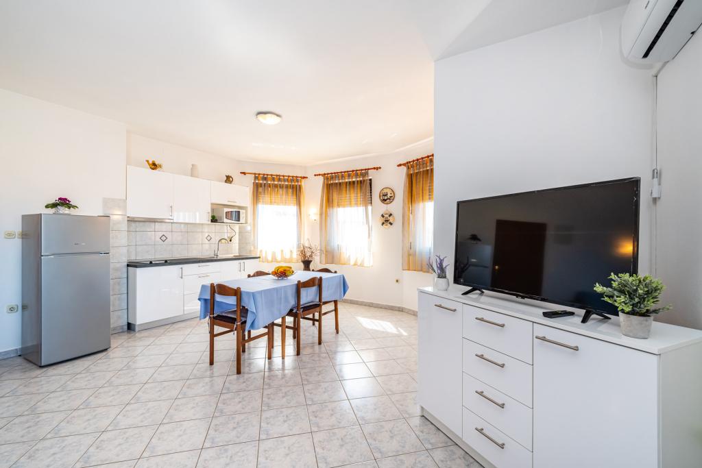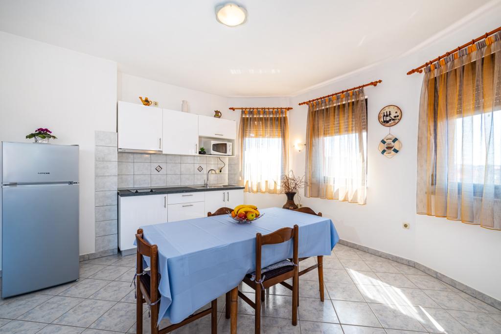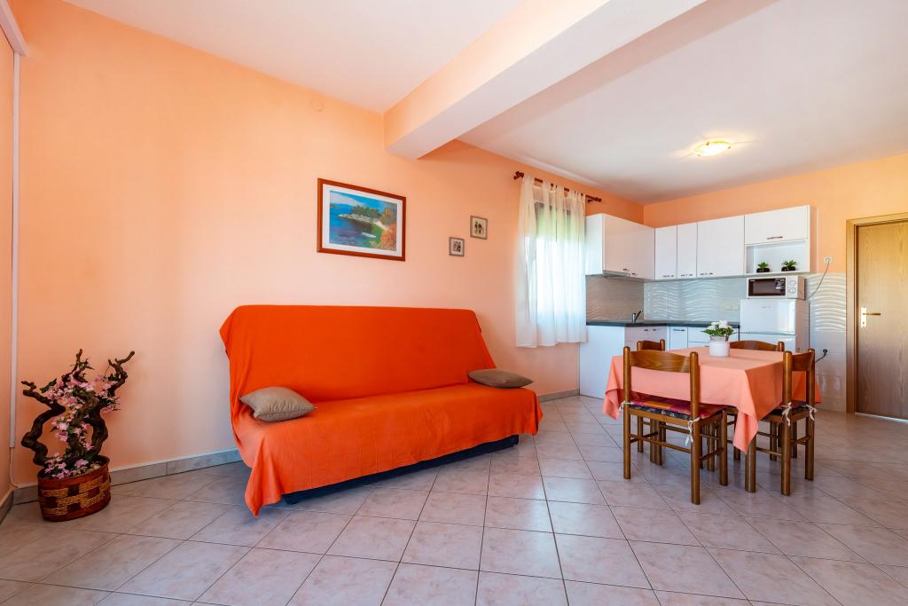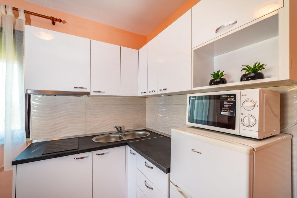 Studio apartman ugodan za boravak. Maksimalno opremljen, uredan i čist. Terasa predivna sa pogledom na more. Parking za automobile u hladovini cijeli dan. Domaćin gospođa izuzetno komunikativna, pristojna i maksimalno ljubazna i profesionalna. Dvorište i okoliš izuzetno uredni. Apsolutno svaka pohvala i preporuka svima. Vraćamo se opet!